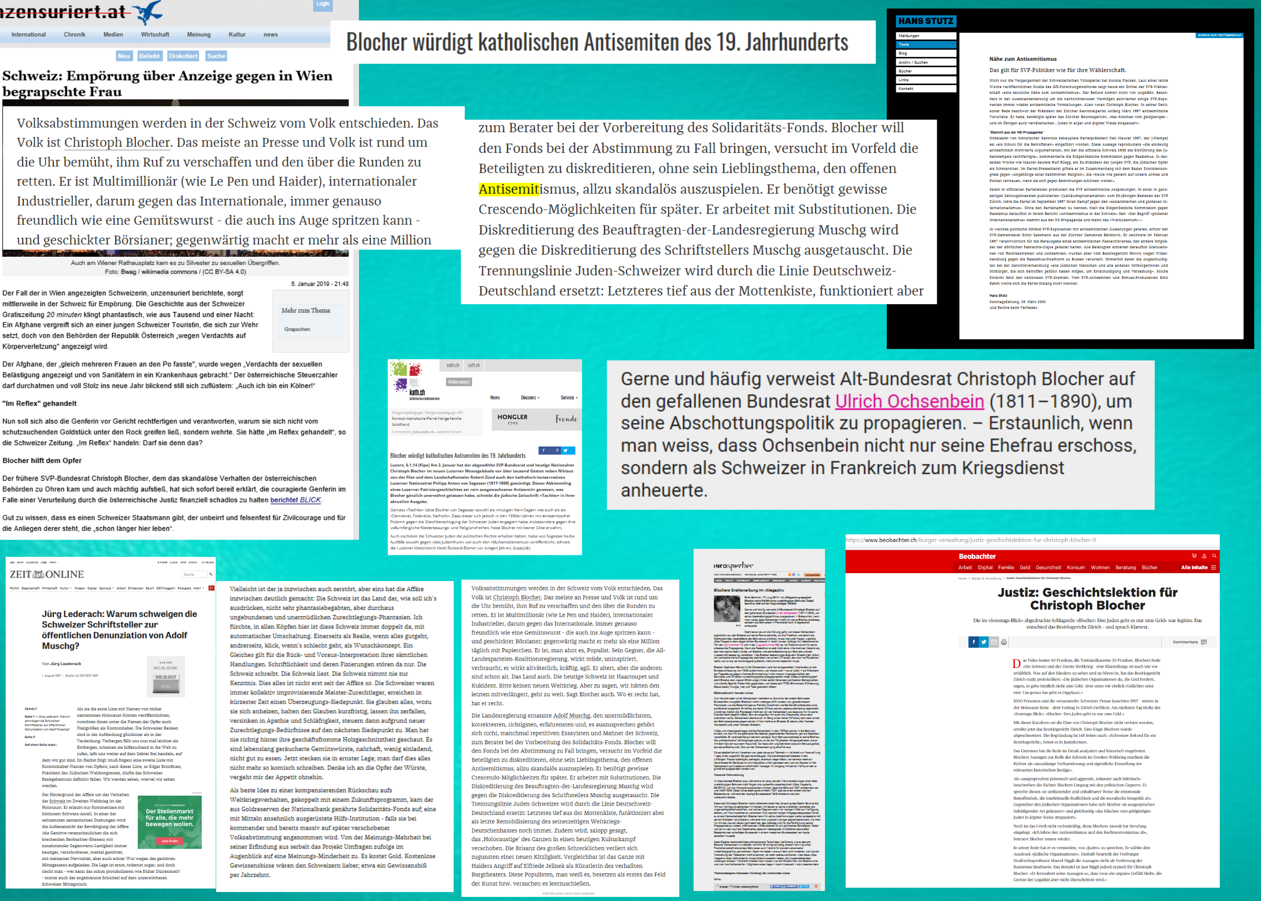 „Der frühere SVP-Bundesrat Christoph Blocher, dem das skandalöse Verhalten der österreichischen Behörden zu Ohren kam und auch mächtig aufstieß, hat sich sofort bereit erklärt, die couragierte Genferin im Falle einer Verurteilung durch die österreichische Justiz finanziell schadlos zu haltenberichtet BLICK.