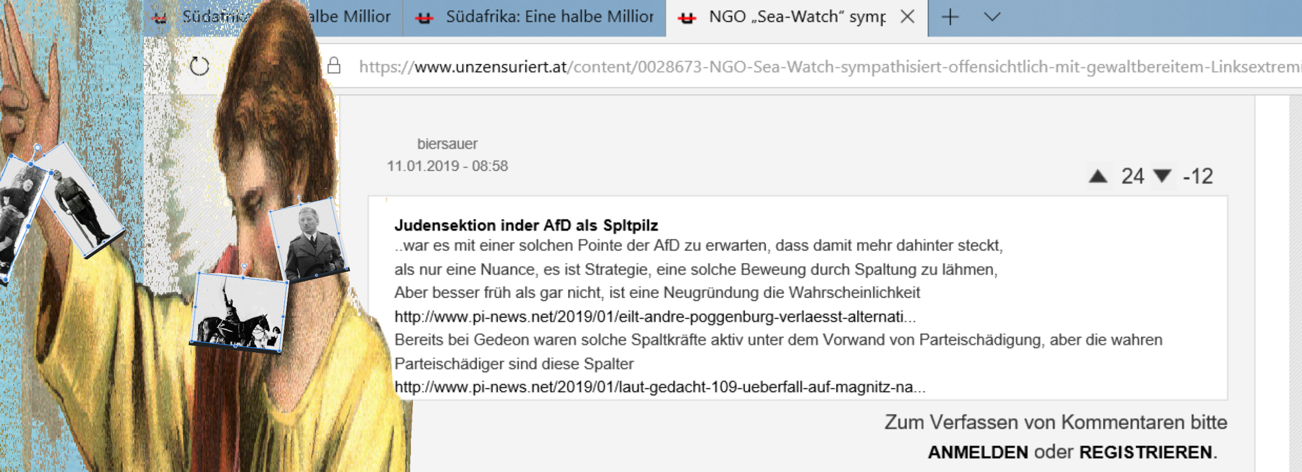 Sie wollen sich wohl auch nicht mehr, kurz gesagt, gegen den Willen ihrer Schreibgemeinschaft stellen. Waren es gestern, am 12.1.19, noch rund neunundfünfzig Prozent, so sind es am 13.1.19 bereits rund siebenundsechzig Prozent, die einem antisemitischen Kommentar zustimmen. Zwei Drittel. In Österreich nicht nur eine absolute Mehrheit, sondern eine, um die Verfassung zu ändern.