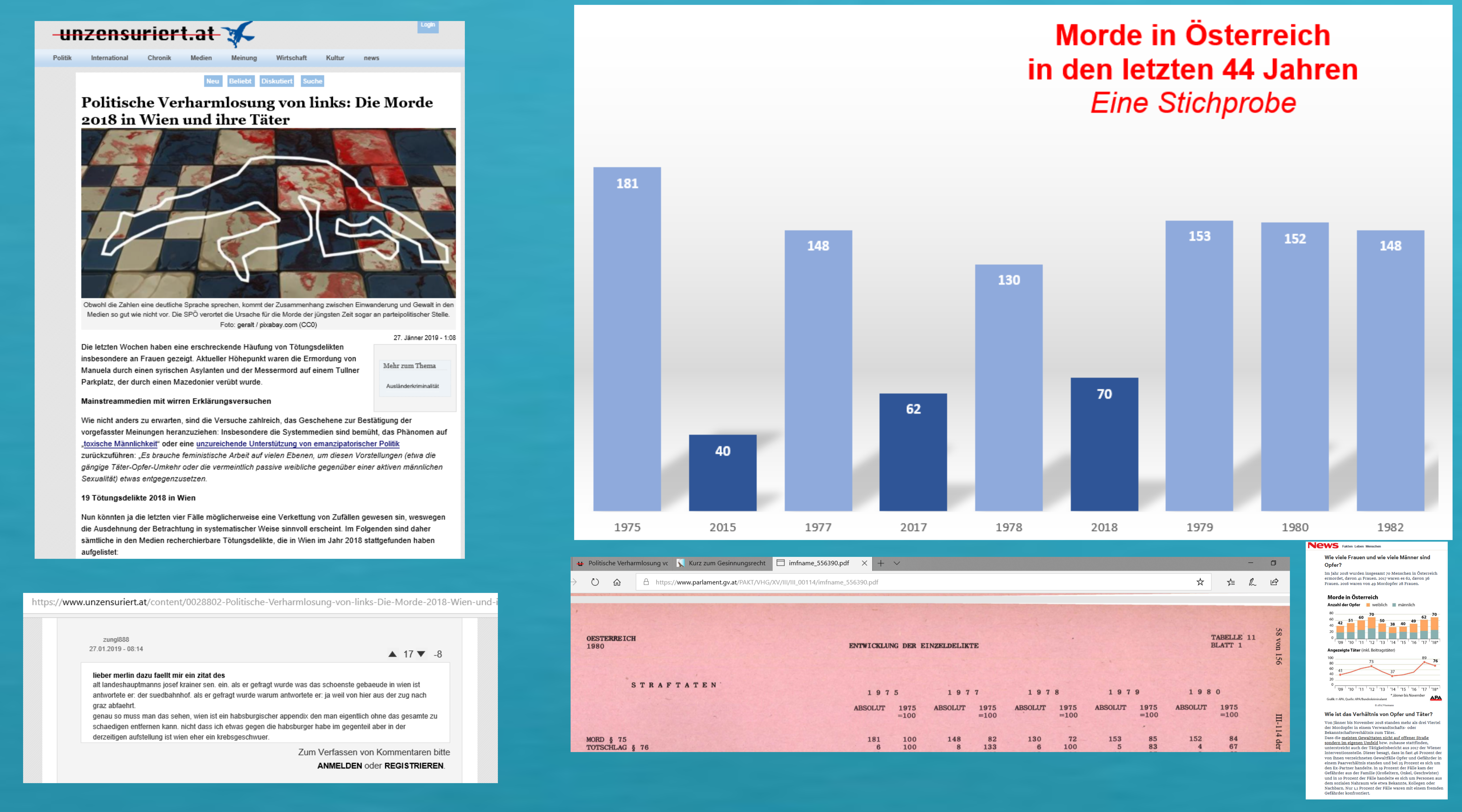 Vorgestriger Kommentar der gesinnungsgemäß zensurierten Website der identitären Regierungspartei mit der Schlagzeile „Politische Verharmlosung von links: Die Morde 2018 in Wien und ihre Täter“ …