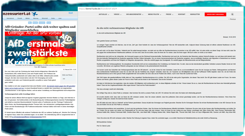 „In einem Brandbrief fordert er nämlich den Ausschluss von sogenannten ‚Rechtsextremen‘ in den eigenen Reihen, weil sie seiner Vorstellung von Meinungsfreiheit nicht entsprechen. Als Unterstützung zieht er ausgerechnet den in letzter Zeit so oft danebengegriffenen Verfassungsschutz heran.“