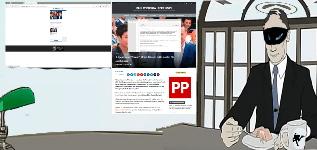 Weshalb Austriak aber nicht zu „Philosophia perennis“ verlinkt, könnte auch nur vermutet werden. Immerhin schreibt David Berger diesen Aufruf auf dieser Website bereits am 13. März 19. Vielleicht meint Austriak, der hochtrabende Titel der Website könnte die Unzensurierten überfordern, vor den Kopf stoßen, vielleicht aber meint Austriak selber, es müsse sich bei einem solchen Websitenamen um Zweideutiges, gar um Anrüchiges, das weder Austriak selbst noch den Unzensurierten zumutbar …
