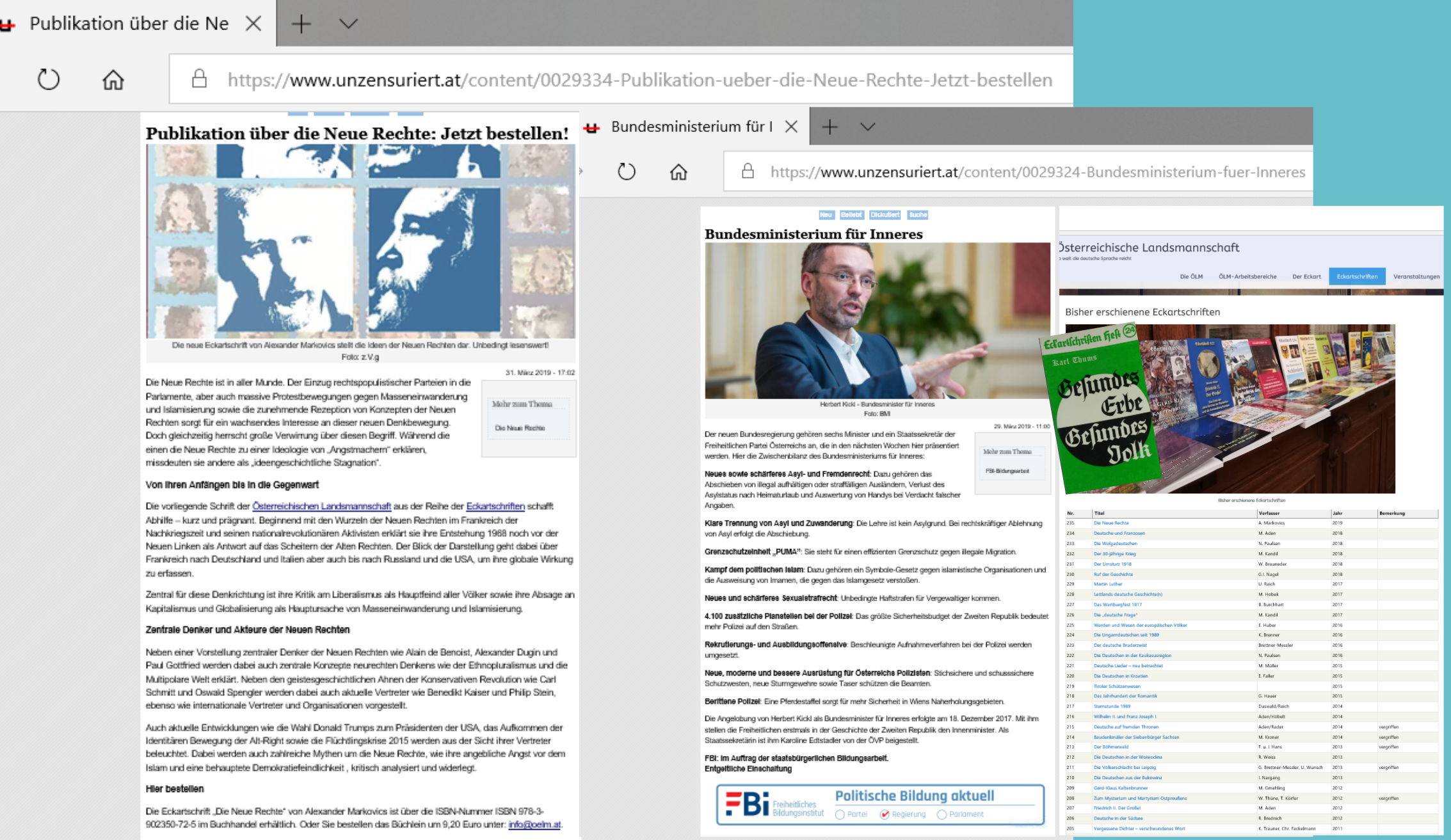 „Publikation über die Neue Rechte: Jetzt bestellen! FBI: Entgeltliche Einschaltung“