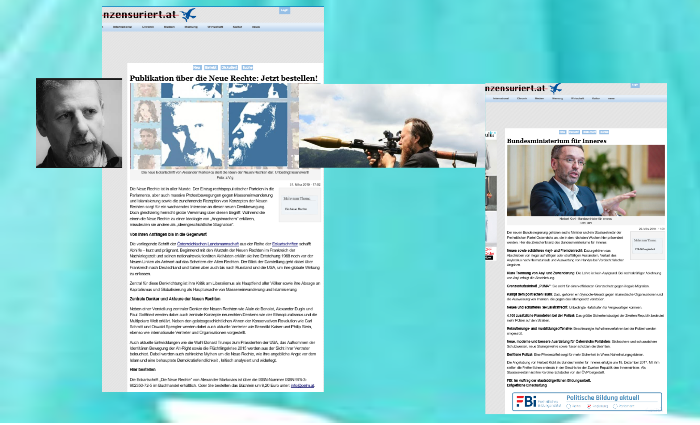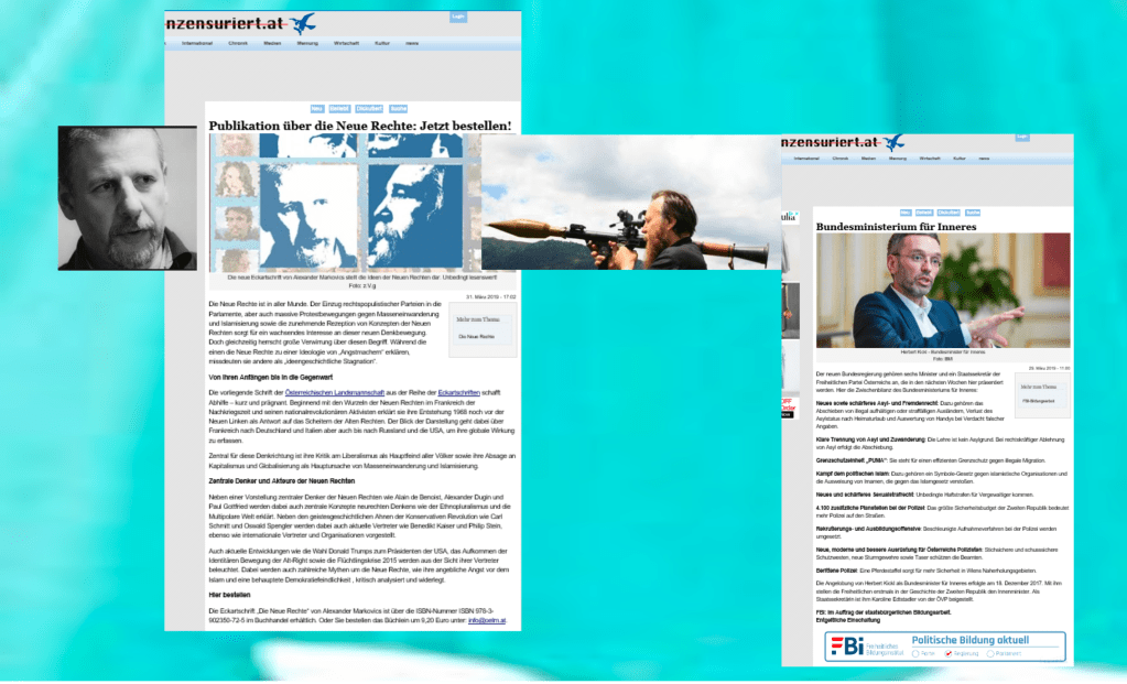 … es gesinnungsgemäß recht stimmig ist, auf dem Buchdeckel von Alexander Markovics neben Dugin der in Deutschland genannten „Salonfaschisten“ recht prominent positioniert zu sehen, mit dem gegen „Entartung“ …