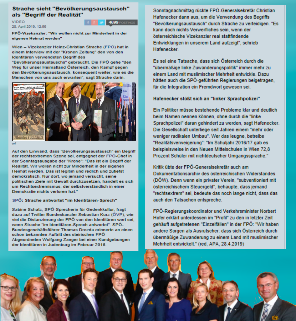 Er, zurzeitiger Vizekanzler in Österreich, verwende mit „Bevölkerungsaustausch“ einen I-Begriff, übernehme einen Begriff aus der „rechtsextremen Szene“, der Vizekanzler „im identitären Sprech“ und so weiter und so fort.