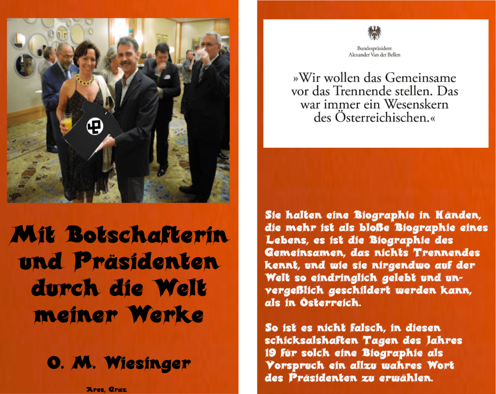 In welchem Verlag könnte eine solche Biographie des Gemeinsamen erscheinen? Dafür gibt es nur einen Verlag in Österreich, der wie kein zweiter das Wesen des Österreichischen zum Ausdrucke bringt, einen Verlag in Graz. Wie überhaupt Graz sich anbietet, die Berufung von Odin Wiesinger mit der sofortigen Benennung einer Straße, eines Platzes nach ihm, am besten mit der Umbenennung des Hauptplatzes in „Odin Wiesinger – Platz des Gemeinsamen“ zu krönen.