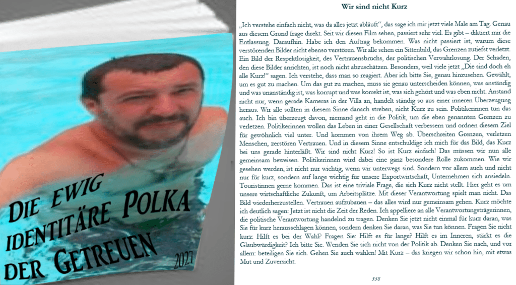 Und der vom Verlag in „Die ewig identitäre Polka der Getreuen“ gedruckte Klappentext? Dieser könnte knapp und bündig ausfallen, etwa so: