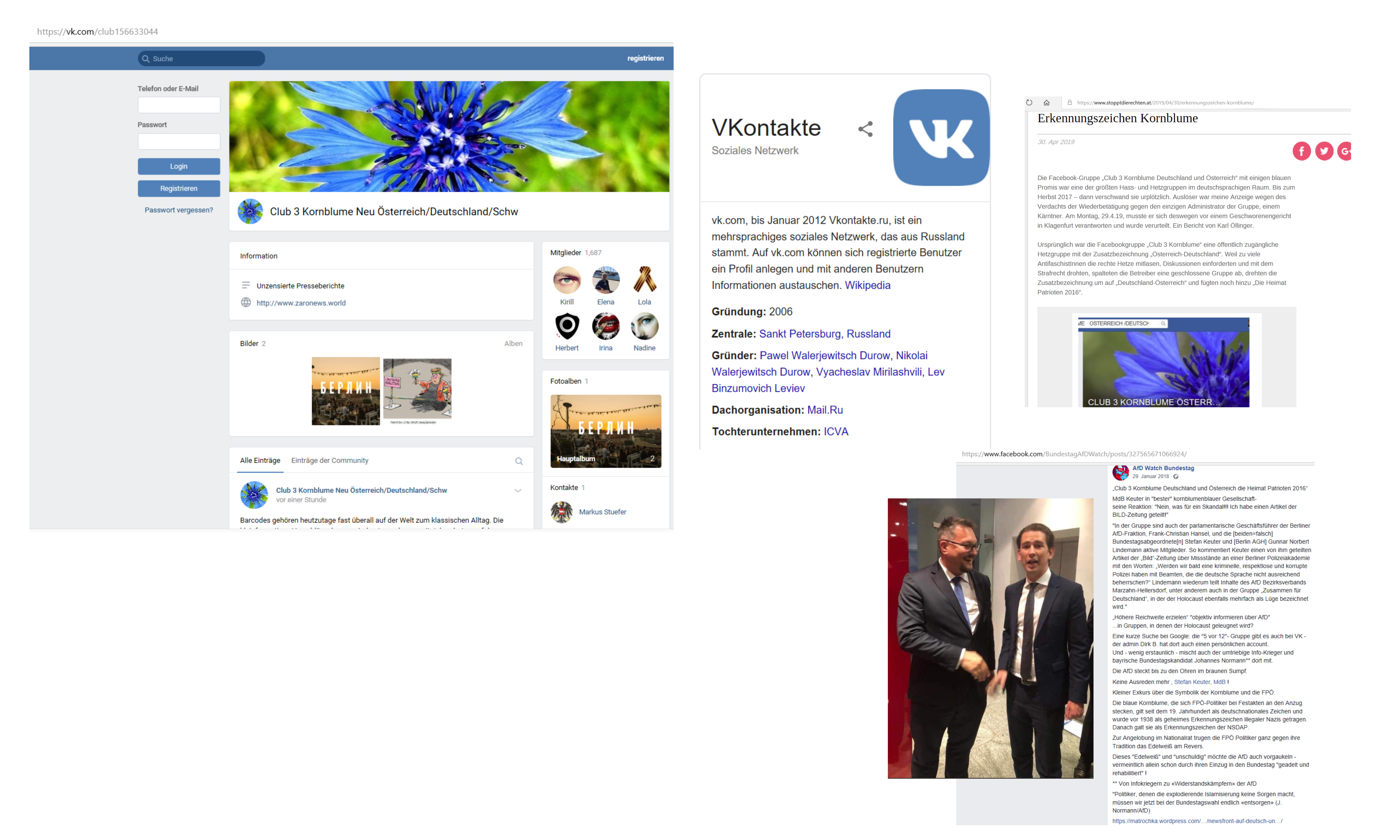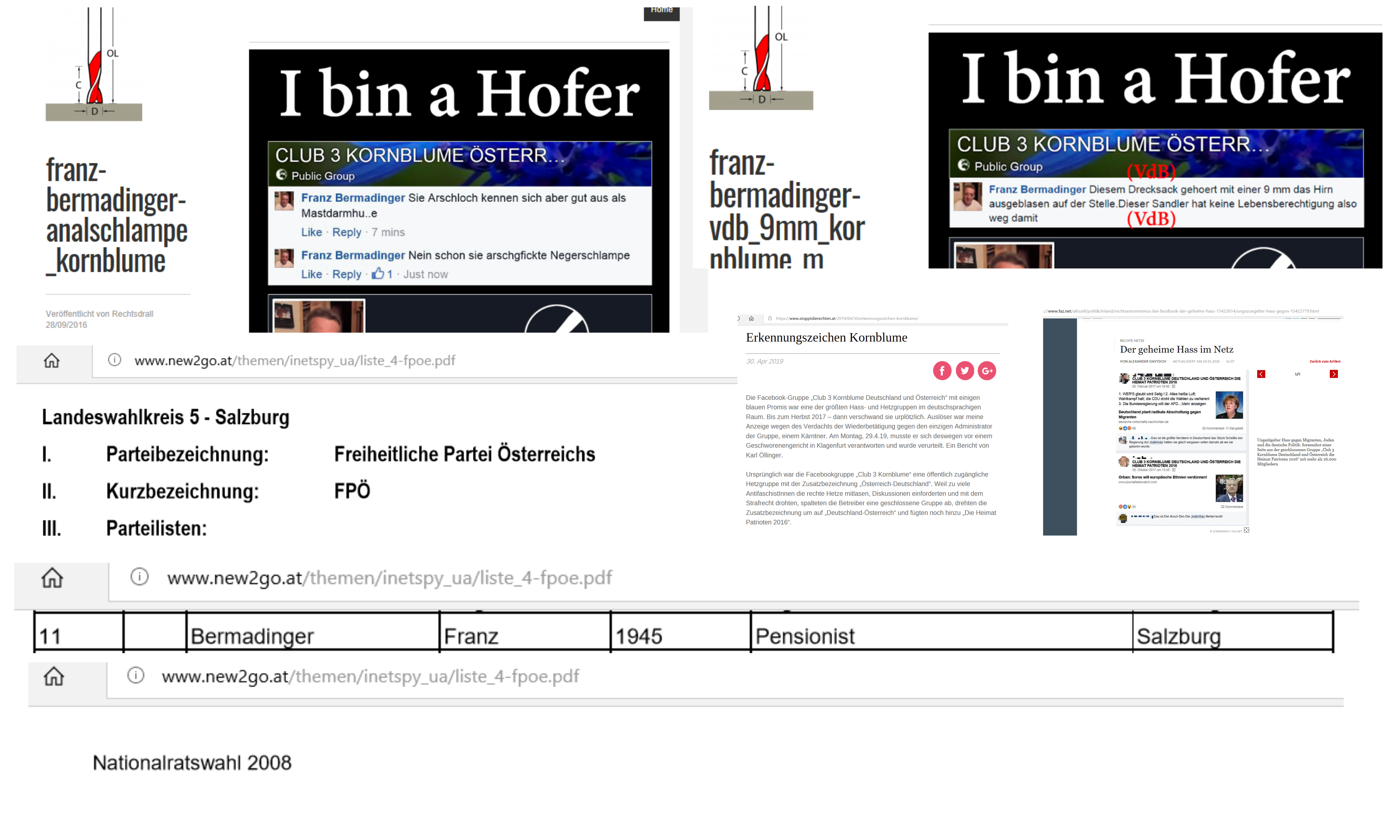 „Die Facebook-Gruppe ‚Club 3 Kornblume Deutschland und Österreich‘ mit einigen blauen Promis war eine der größten Hass- und Hetzgruppen im deutschsprachigen Raum. Bis zum Herbst 2017 – dann verschwand sie urplötzlich. Auslöser war meine Anzeige wegen des Verdachts der Wiederbetätigung gegen den einzigen Administrator der Gruppe, einem Kärntner. Am Montag, 29.4.19, musste er sich deswegen vor einem Geschworenengericht in Klagenfurt verantworten und wurde verurteilt.“