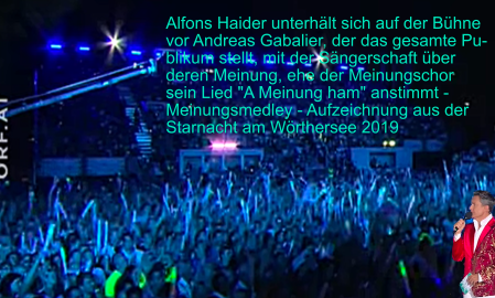 Und dann wieder Musik oder Lärm, Textlärm von Andreas Gabalier: „A Meinung ham“ …