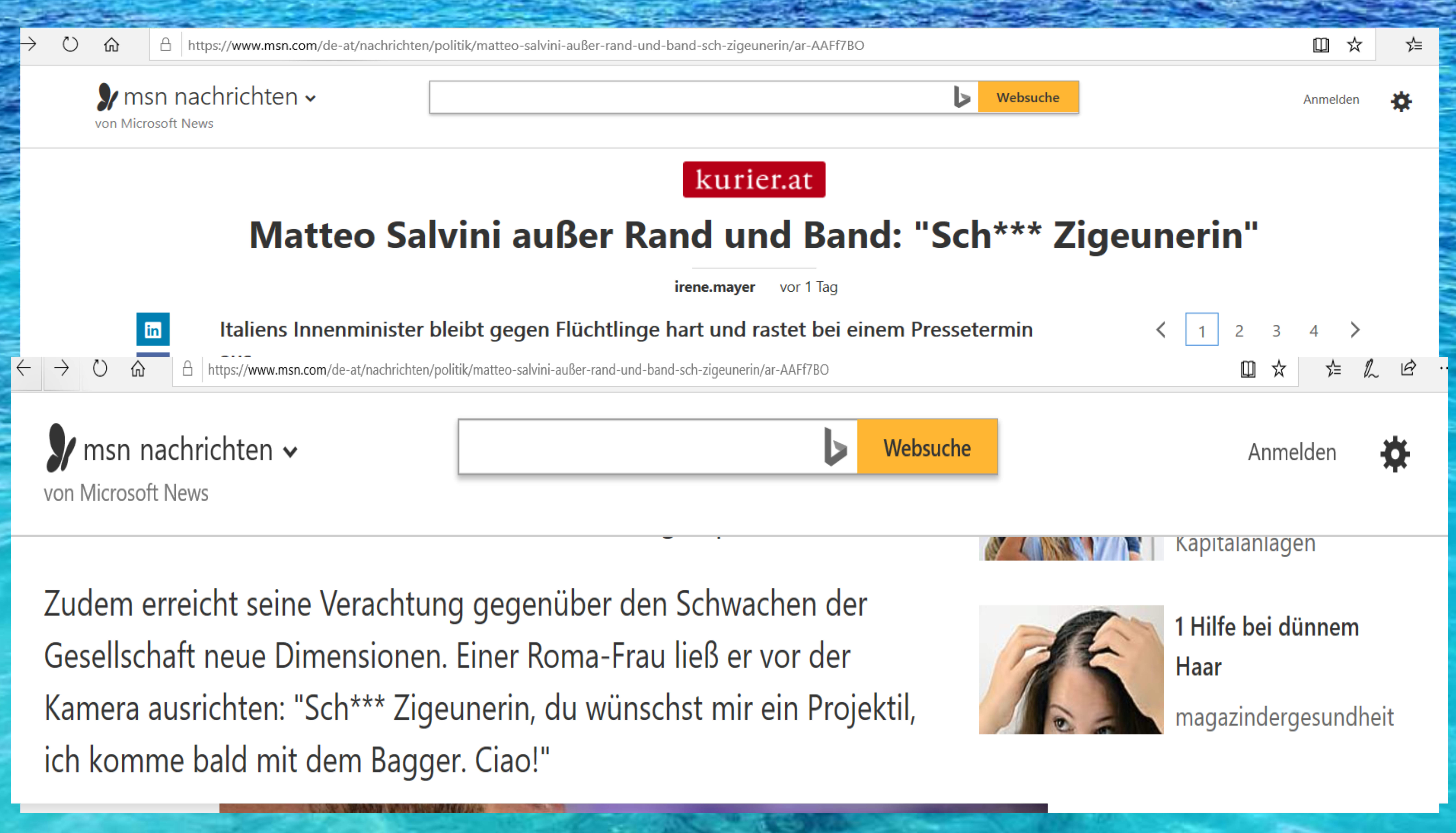 Ist das nicht herzig korrekt? Wie Microsoft News sich geniert, „Scheiß“ auszuschreiben, aber ohne sich zu genieren, „Zigeunerin“ ausschreibt, geradeso, als wäre „Zigeunerin“ kein …, geradeso, als hätte Roma-Anhänger eine Frau mit dieser Anrede adeln …