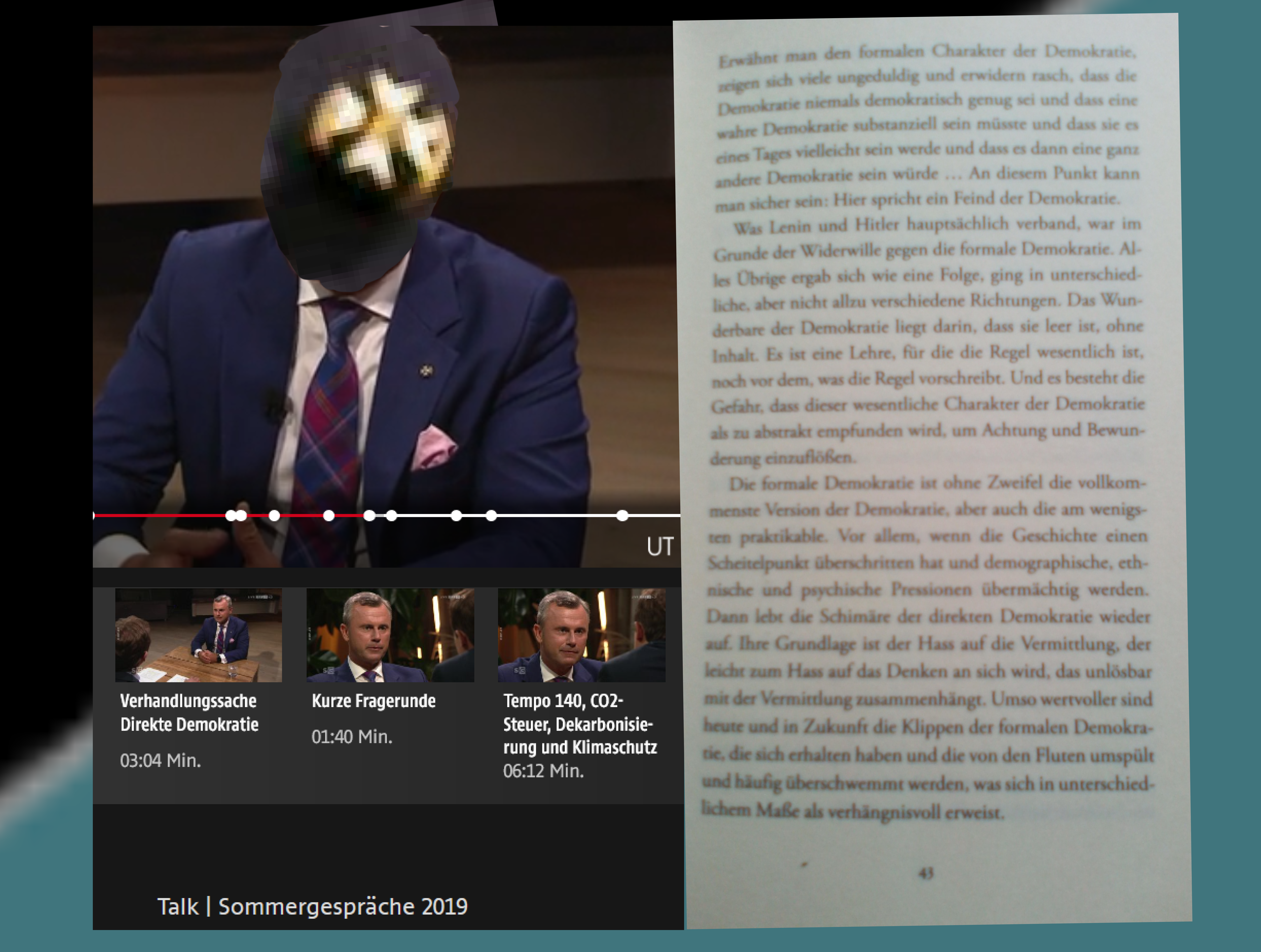 Weil es in diesem Kapitel auch um ein Buch geht, das der Obmann der identitären Regierungspartei verfaßte, darf, ehe auf die „direkte Demokratie“ direkt zu sprechen gekommen wird, gleich noch ein Buch erwähnt werden, in einem weiteren Kapitel, dessen Inhalt der identitären Obmann für „insgesamt in Ordnung“ – der Inhalt eines als „rechtsextremistisch“ eingestuften …