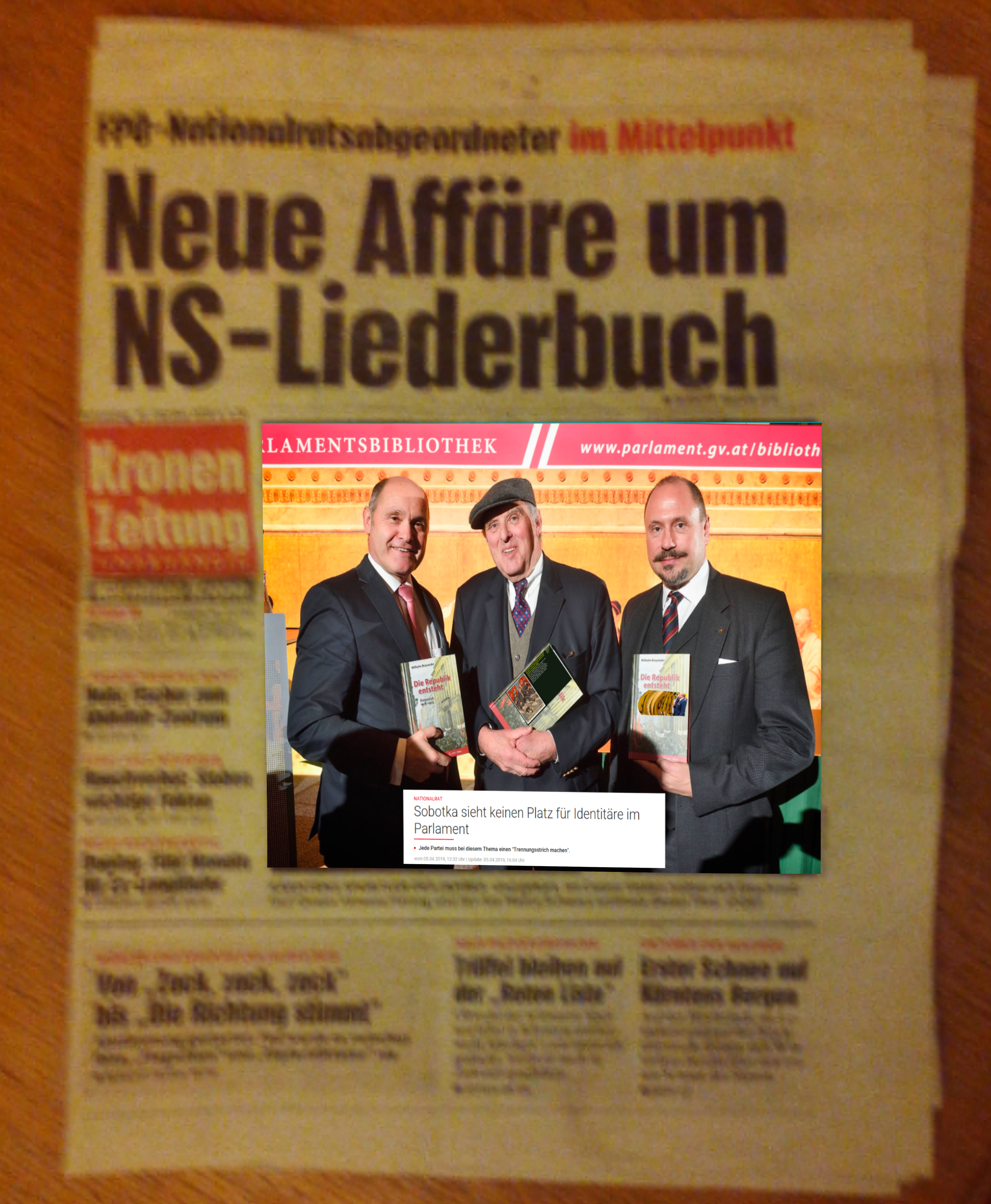 Zanger also nahm teil. Im Jahr ’16. An einer identitären Demonstration. Wolfgang Sobotka nahm nicht teil, sondern er, Sobotka, lud einen identitären Teilnehmer in das Parlament, um für seine, für des identitären Teilnehmers Produkte zu werben, im Parlament, im Jahr ’19.
