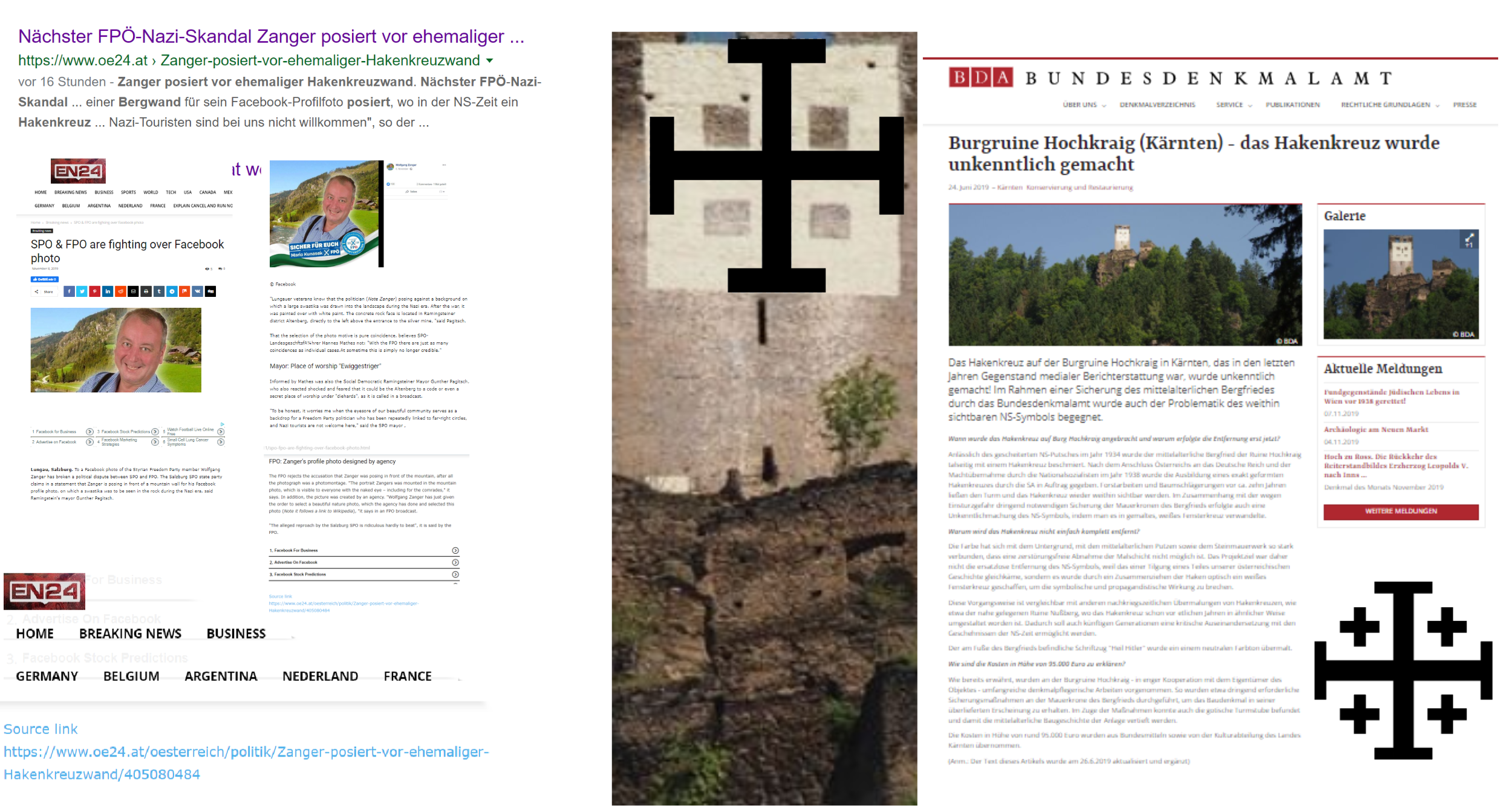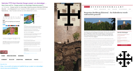 Nun wird sogar ein nicht zu sehendes Hakenkreuz zu einem Hakenkreuz, während ein 85 Jahre lang zu sehendes Hakenkreuz nicht gesehen werden wollte, das 85 Jahre lang weithin tatsächlich zu sehen war, in Österreich, von 1934 bis 2019.