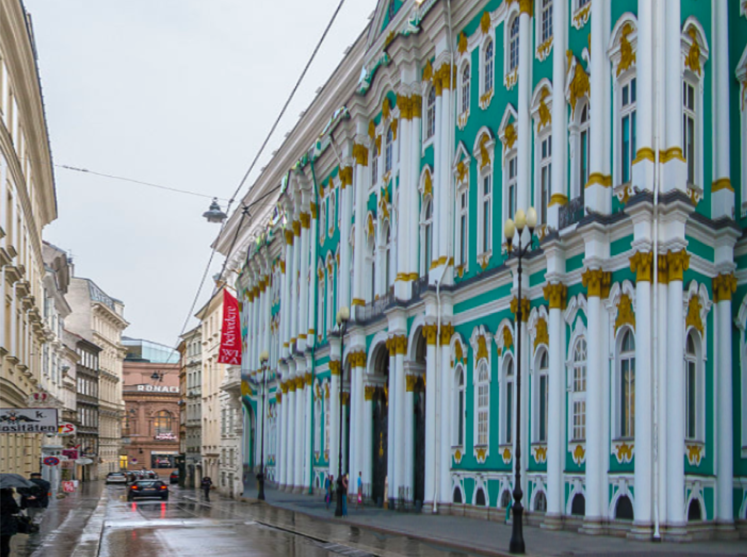 Und wenn Zarewitsch im „Winterpalais“ ganz nah an die Fenster herantritt, aus den Fenstern hinausblickt, was erblickt er – die Kulisse des Wohlstands …