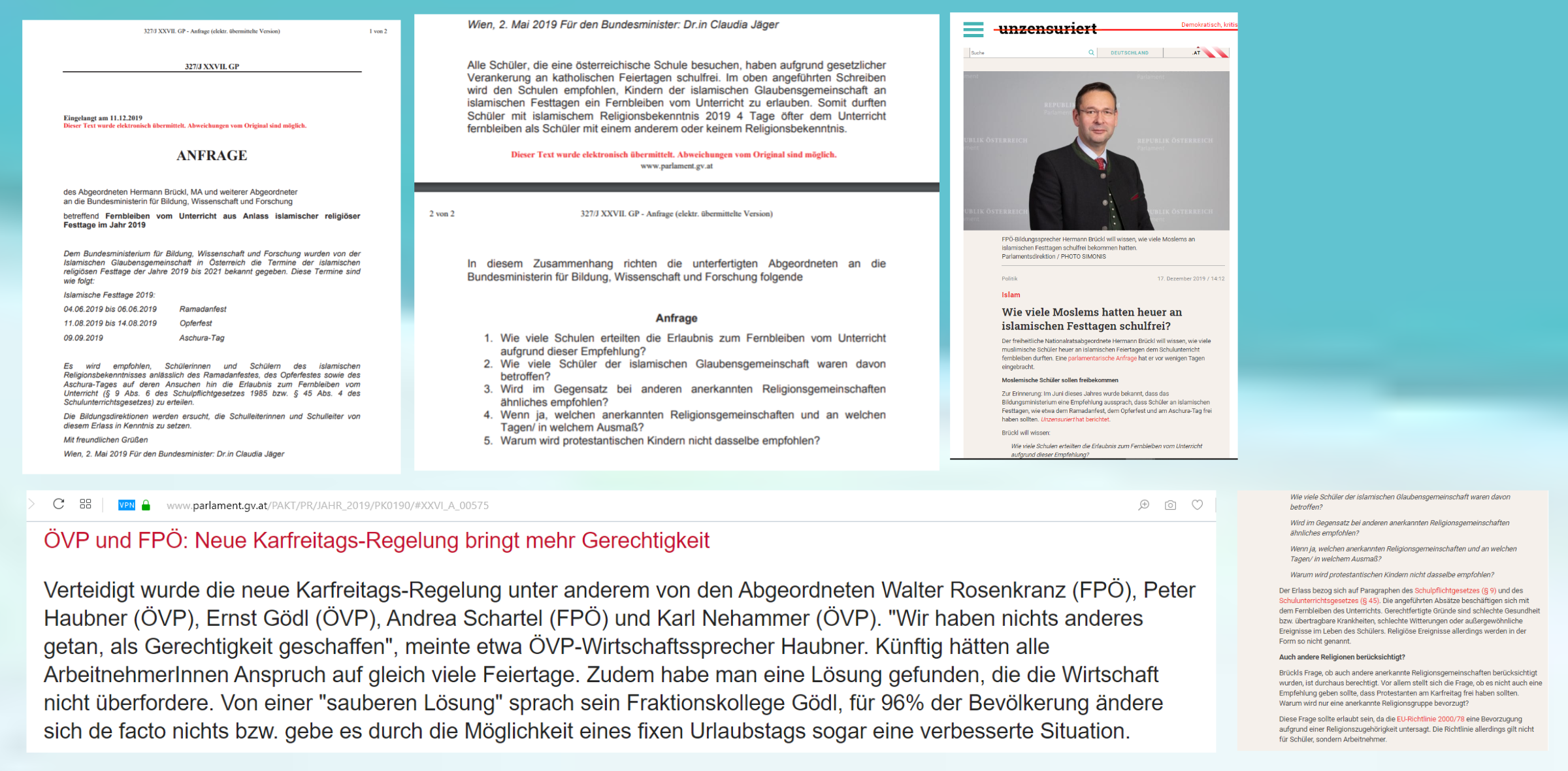 Das schreibt die gesinnungsgemäß zensurierte Website der identitären Parlamentspartei in Österreich am 17. Dezember 19 …