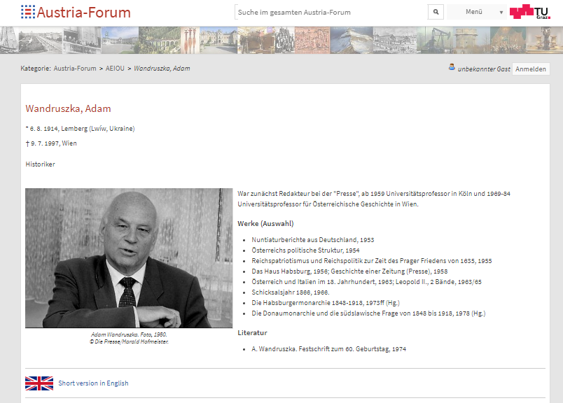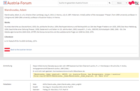 E. Bruckmüller ist die Quelle für den Eintrag über Wandruszka im Austria-Forum. Das kann der identitären Parlamentspartei nicht vorgehalten werden, sich nicht darum bemüht zu haben, viele Quellen für ihren „Weißenbericht“ ausfindig zu machen, also auch auf Bruckmüller …