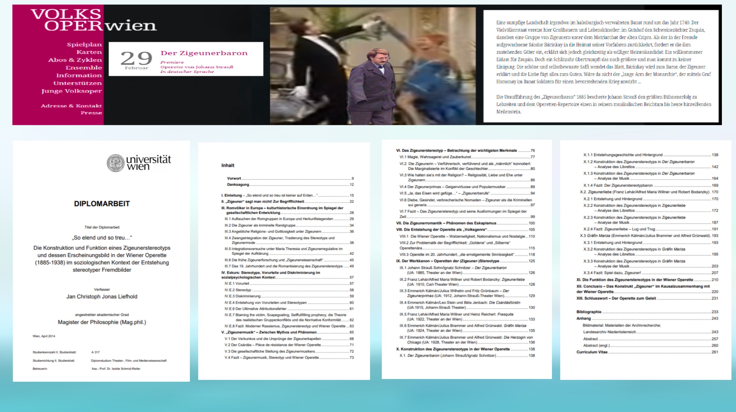 von Kriminalisten zu seinen ‚rassischen Eigenschaften‘ erklärt. Zeitgleich feierten die Väter der Wiener Operetten bedeutende Erfolge mit dem Zigeunerbaron, dem Zigeunerprimas, der Gräfin Mariza oder Frasquita. Auf der