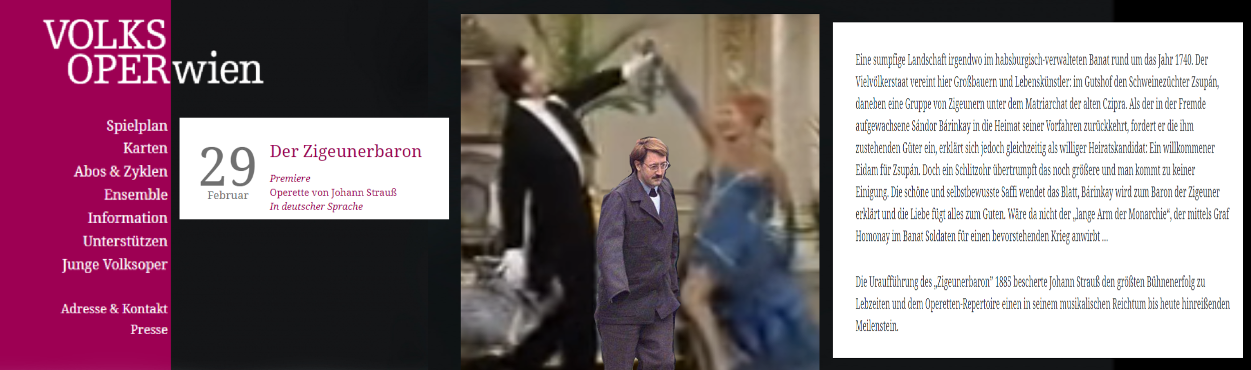 Daß die Volksoper in Verehrung von Johann Strauß werkgetreu nicht auf „Zigeuner“ verzichtet, kann durchaus verstanden werden, 2020 aber dieses Wort, das für Hunderttausende Menschen ein nicht freiwillig gelöstes Zugticket nach Auschwitz war, nicht wenigstens in Anführungszeichen zu setzen, nun, das führt unweigerlich tief in die Geschichte, die weit vor Auschwitz beginnt, der sogenannten Wiener Operette, in denen die Menschen vorkommen, von denen die Volksoper ganz ohne Anführungszeichen …