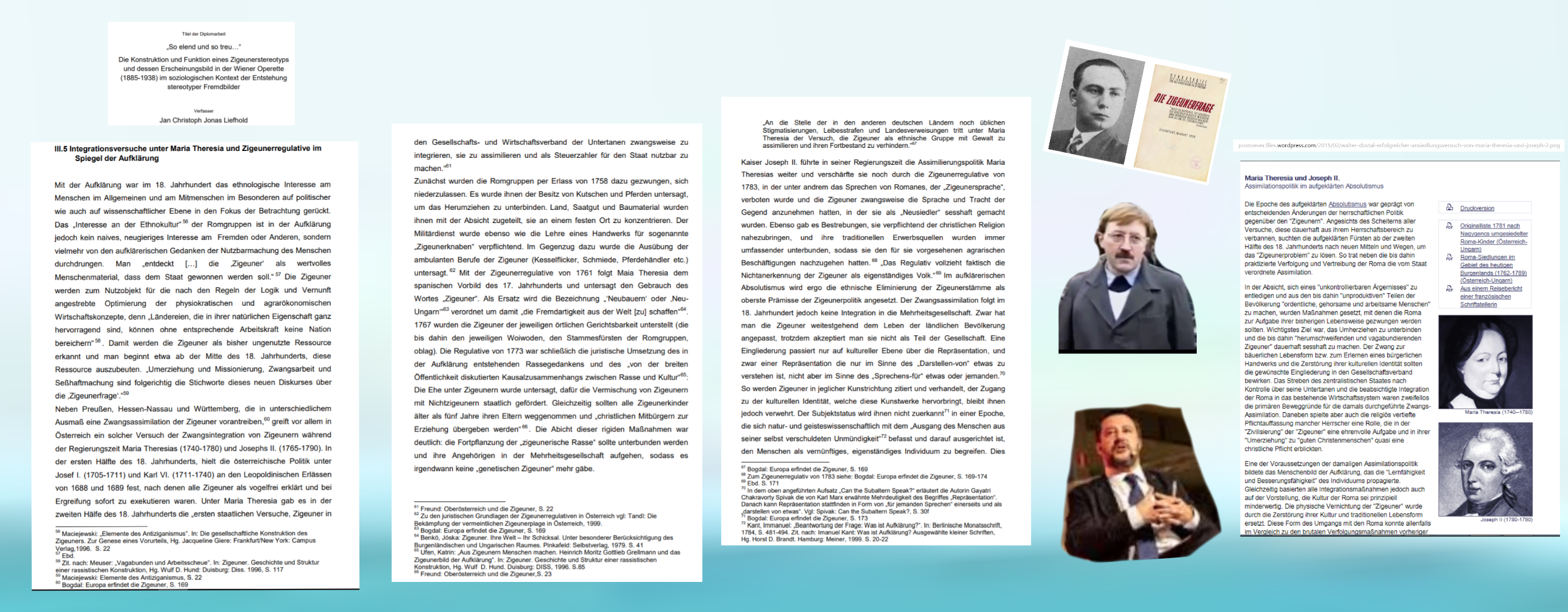 wie auch auf wissenschaftlicher Ebene in den Fokus der Betrachtung gerückt. Das „Interesse an der Ethnokultur“ der Romgruppen ist in der Aufklärung jedoch kein naives, neugieriges Interesse am Fremden oder Anderen, sondern vielmehr von den aufklärerischen Gedanken der Nutzbarmachung des Menschen durchdrungen. Man „entdeckt […] die ‚Zigeuner‘ als wertvolles Menschenmaterial, dass dem Staat gewonnen werden soll.“
