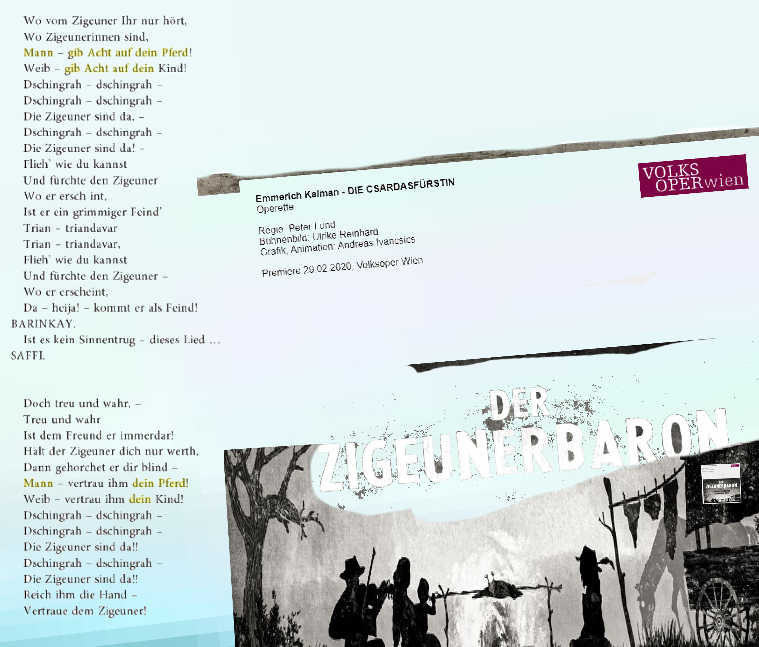 Im Bereich des Musiktheaters stößt man bemerkenswerterweise immer wieder auf Sujets und Themen, welche die Kultur der Sinti und Roma thematisieren oder zitieren. (Davon ist etwa im Vorwort zur aktuellen Ausgabe unserer Volksopernzeitung zu lesen.) Unsere aktuelle Premiere, Johann Strauß‘ Operette Der Zigeunerbaron, trägt den Begriff ‚Zigeuner‘ sogar im Titel. Alleine die Tatsache, dass wir dieses Werk, welches immerhin ein Meilenstein der Wiener Operette ist, auf den Spielplan gesetzt haben, könnte Irritationen hervorrufen – das war der Direktion der Volksoper und allen künstlerisch Verantwortlichen der Produktion von vornherein bewusst. Denn es ist allgemein bekannt: Die Volksgruppe der Sinti und Roma selbst lehnt die Fremdbezeichnung ‚Zigeuner‘ wegen stigmatisierender und rassistischer Konnotationen größtenteils ab. Auch gesamtgesellschaftlich hat sich deren Eigenbezeichnung – zum Glück! – im Sprachgebrauch weitgehend durchgesetzt. Mit der Entscheidung, Johann Strauß‘ fantastischer Musik, die er für seine späte Operette Der Zigeunerbaron geschrieben hat, eine Bühne zu bieten, ging für uns und für das gesamte Kreativteam der Produktion selbstverständlich eine intensive Auseinandersetzung mit der Geschichte der Sinti und Roma einher. Aus dieser Reflexion und zahlreichen internen Gesprächen zum Thema resultierend haben wir uns zu folgendem Umgang mit dem Begriff ‚Zigeuner‘ im Zuge der Neuproduktion des Zigeunerbarons entschieden: Die ‚Zigeuner‘, die in Strauß’ Operette übrigens als selbstbewusste Sympathieträger auftreten, tragen ihre im Stücktitel verankerte Bezeichnung als solche durchaus selbst auf den Lippen – im Kontext der Handlung kann man also nicht von einer Fremdbezeichnung sprechen. Wir verwenden den Begriff ‚Zigeuner‘ daher in allen Inhaltsangaben und damit verwandten (’stückimmanenten‘) Textsorten unkommentiert und ohne Anführungszeichen. In allen anderen – kommentierenden oder weiterführenden – Texten verwenden wir den Begriff jedoch selbstverständlich unter Anführungszeichen gesetzt.