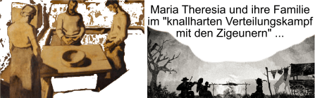 Weil aber „historische Fakten“, „zeitgeschichtliche Vorurteile“ und auch die Habsburg in diesem morgendlich gesendeten Gespräch angesprochen wurden, ist doch noch einmal hervorzuheben, was für einem „knallharten Verteilungskampf“ die arme Habsburg in ihrer armselig windschiefen und nur mit dem Kreuze möblierten Hütte im sumpfigen Banat ausgesetzt war, daß sie einzig in der ethnischen Auslöschung der „Zigeuner“ ihre Rettung sah, sie darin ihre einzige Möglichkeit sah, wenigstens ein wenig von den knapp zu verteilenden Gütern abbekommen zu dürfen, und auch ihrem Sohne war dieser „knallharte Verteilungskampf“ nicht erspart geblieben …