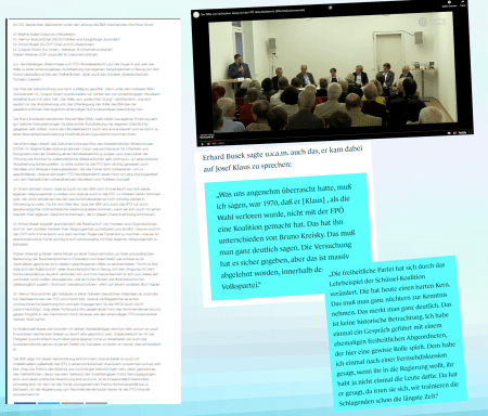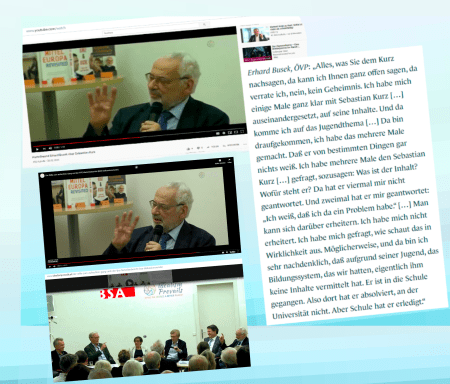 mit denen sie das Video verbreiteten, offensichtlich wieder löschten (jedenfalls nicht mehr verfügbar sind), vielleicht aus der Befürchtung heraus, es könnte eine Fälschung sein, weil das Wesentlichste fehlte, nämlich, wann sprach Erhard Busek so über Sebastian Kurz, kann nun geschrieben werden, es ist keine Fälschung.
