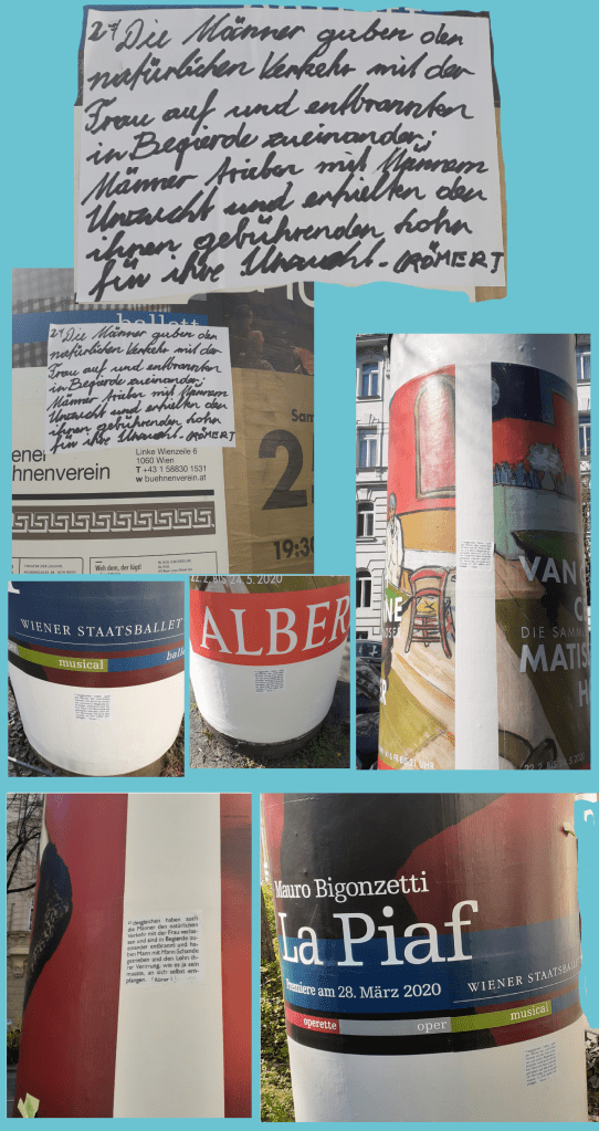 Die Korrektur seines einstigen Briefes dürfte ihm doch nicht so ein großes Anliegen gewesen sein. Sonst hätte er kaum auf die seit Jahrhunderten bekannte Fassung zurückgegriffen, die er mit copy and paste sich herrichtete für das Überkleben von vielen Plakaten auf der Landstraße.