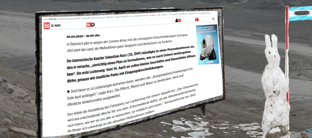 Eine Auferstehung für ein paar Momente zu nehmen, um Zuversicht zu verbreiten, wie nun in Österreich ein Mann etwa im Alter des seinerzeit am ewigen Leben Gescheiterten es mit der Auferstehung versucht, nun, das ist eine Zuversicht, mit der mit Bangen in die Zukunft …