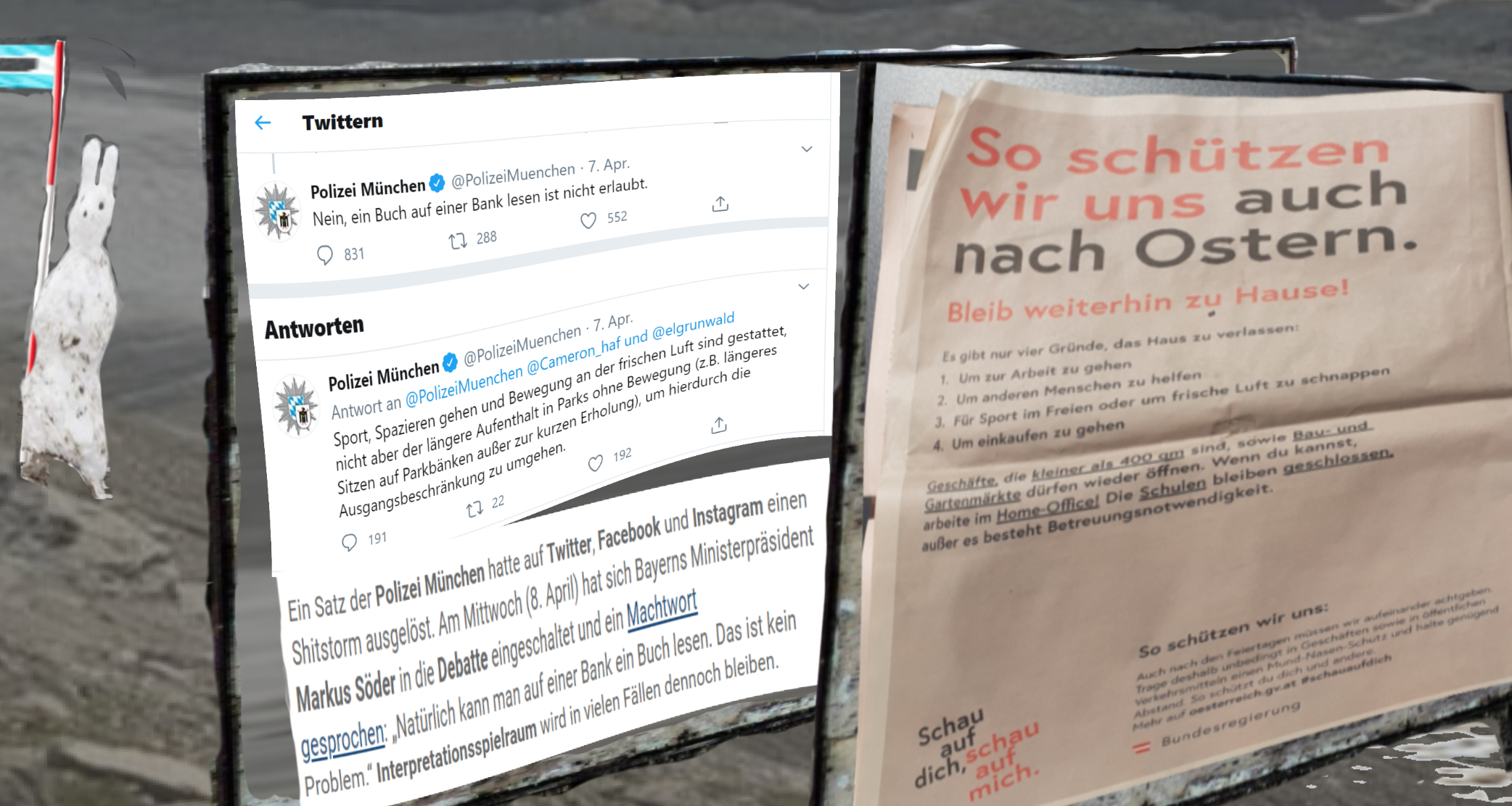 Und noch ein Unterschied zwischen Deutschland und Österreich. In Deutschland stellt zumindest ein sogenannter Regierungschef klar, „natürlich kann man ein Buch lesen“, also im Freien. In Deutschland postet die Polizei, was im Freien gestattet: Sport, frische Luft … In Österreich schaltet die Bundesregierung aufwendige Anzeigen in Zeitungen, was im Freien gestattet: Sport, frische Luft …