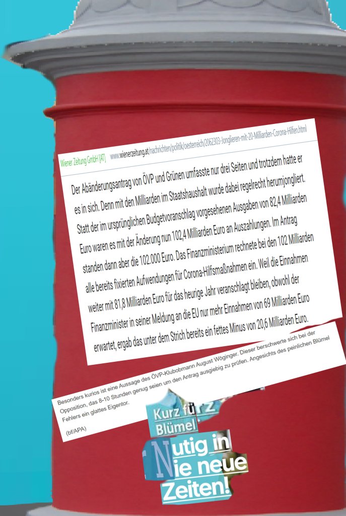 Wenn nun seit Wochen von so vielen Seiten in Österreich aufgezeigt wird, wer noch immer nichts bekommen, wem immer noch nicht geholfen wurde, wer immer noch auf eine Unterstützung warten muß, scheint der Fehler im Abänderungsantrag des Finanzministers die Wirklichkeit richtig abzubilden: Zwanzig Tausend Euro zusätzliche Ausgaben für Corona-Hilfsmaßnahmen …