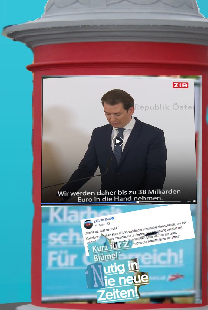 Am 18. März ’20 hat Seb. Kurz vor seinem Satz mit den 38 Milliarden Euro pompös verkündet: „Koste es, was es wolle!“