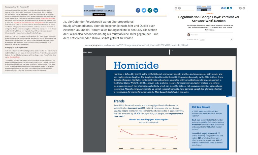 „Ja, die Opfer der Polizeigewalt waren überproportional häufig Afroamerikaner, aber die begehen je nach Jahr und Quelle auch zwischen 36 und 51 Prozent aller Tötungsdelikte in den USA. Sie stehen der Polizei also besonders häufig als mutmaßliche Täter gegenüber – mit dem entsprechenden Risiko, selbst getötet zu werden.“
