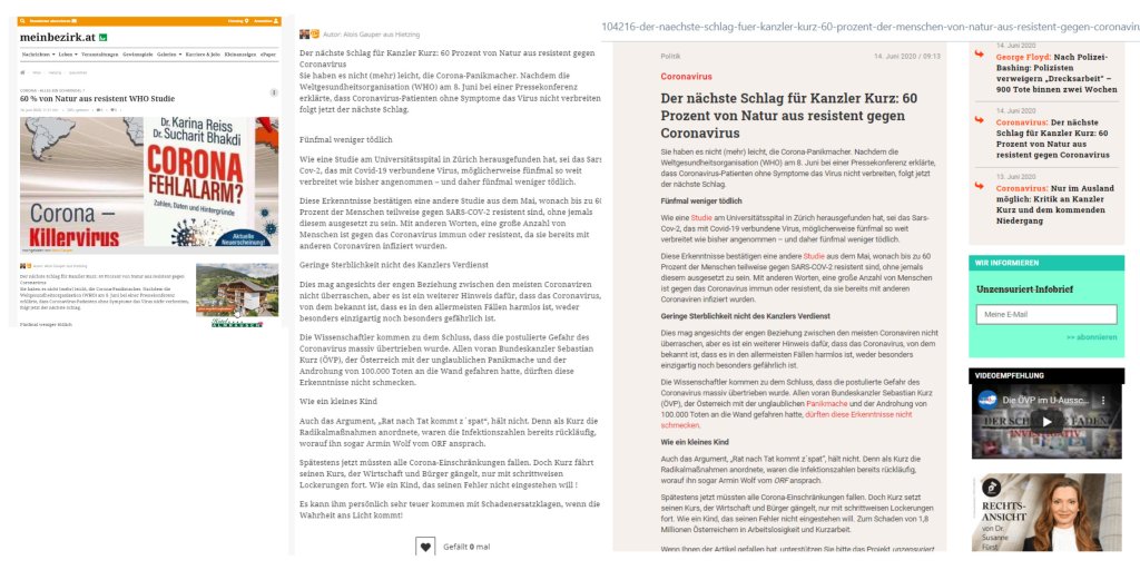 Ob Alois Gauper, „Autor aus Hietzing“, seinen Beitrag „Corona – Alles ein Schwindel? 60 % von Natur aus resistent WHO Studie“ auf „meinbezirk.at“ an diesem Sonntag, 14. Juni ’20, zuerst auf der Website „Unzensuriert“ unter der Überschrift „Coronavirus Der nächste Schlag für Kanzler Kurz: 60 Prozent von Natur aus resistent gegen Coronavirus“ veröffentlichte, das die Uhrzeiten der Hochladungen auf „Unzensuriert“ und auf „meinbezirk.at“ vermuten lassen können, ist vollkommen unerheblich, gleichgültig auch, ob Alois Gauper tatsächlich der „Autor“ auch von „Unzensuriert“ oder ein Weiterverbreiter respektive Wiederverwerter, ein Abschreiber, der verschämt seine Quelle verschweigt, von „Unzensuriert“ ist, und auf „meinbezirk.at“ so tut, als ob er der Schreiber …