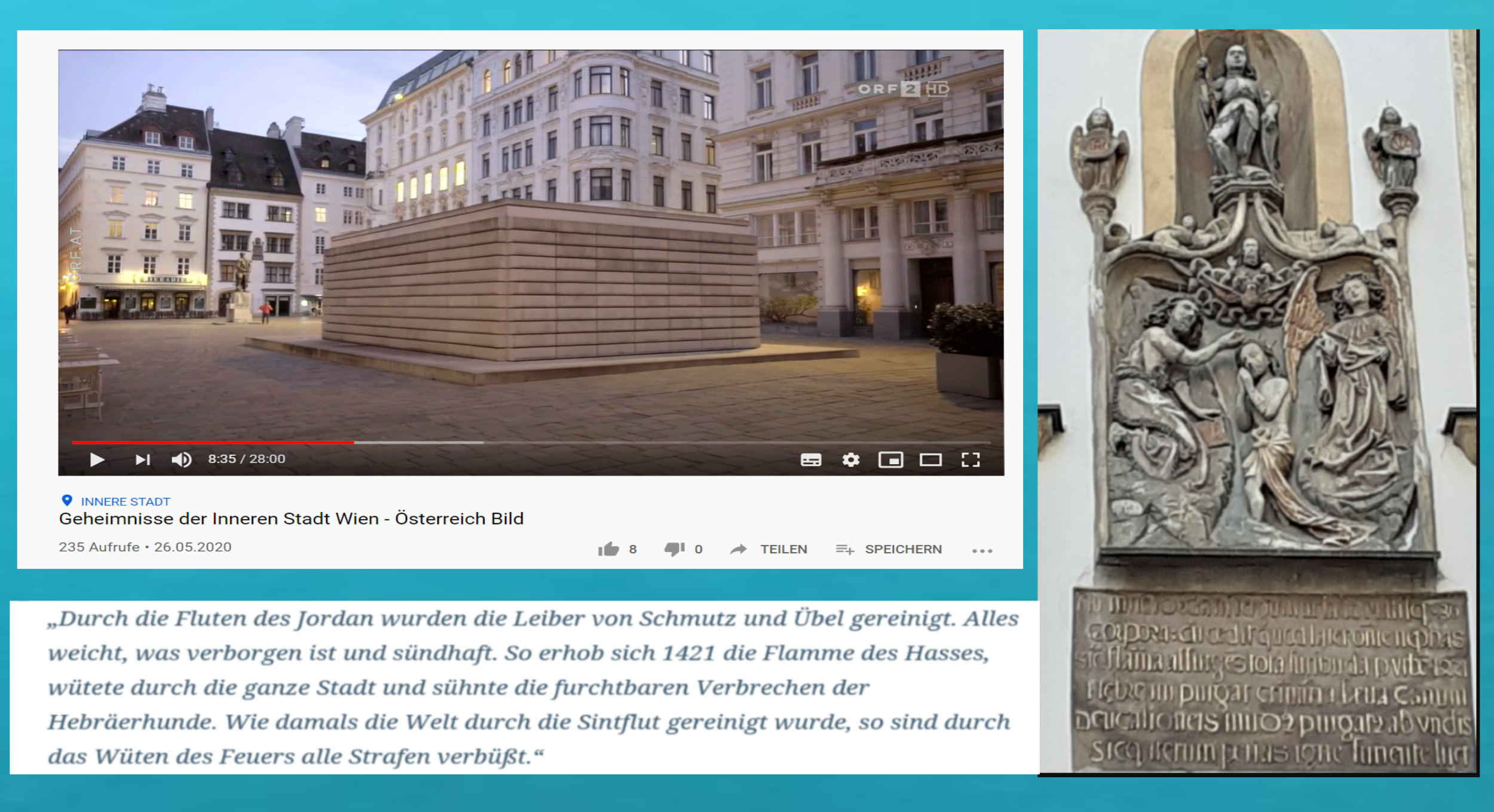 Kein Wort aber in „Geheimnisse der Inneren Stadt“ zu dem bis zum heutigen Tag auf dem Judenplatz in die Mauer getriebenen Antisemitismus …
