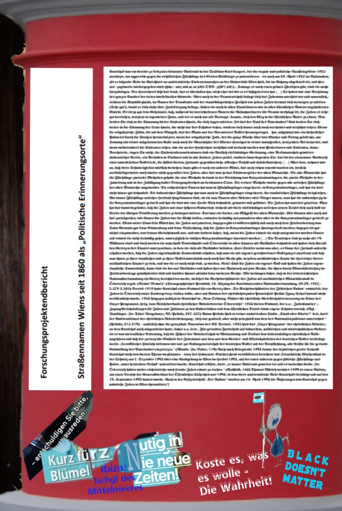 Kurz auch der Weg vom Franziskanerplatz zum Karl-Lueg… nein, der Spaziergang dorthin wird nicht fortgesetzt, die Wanderung kurz entschlossen abgebrochen … zu viele wieder, wie kürzlich erst berichtet, machen sich nach einem Besuch ihres Pilgerhauses auf dem Judenplatz wieder auf, um sich zu betätigen, im Sinne der Streichers …