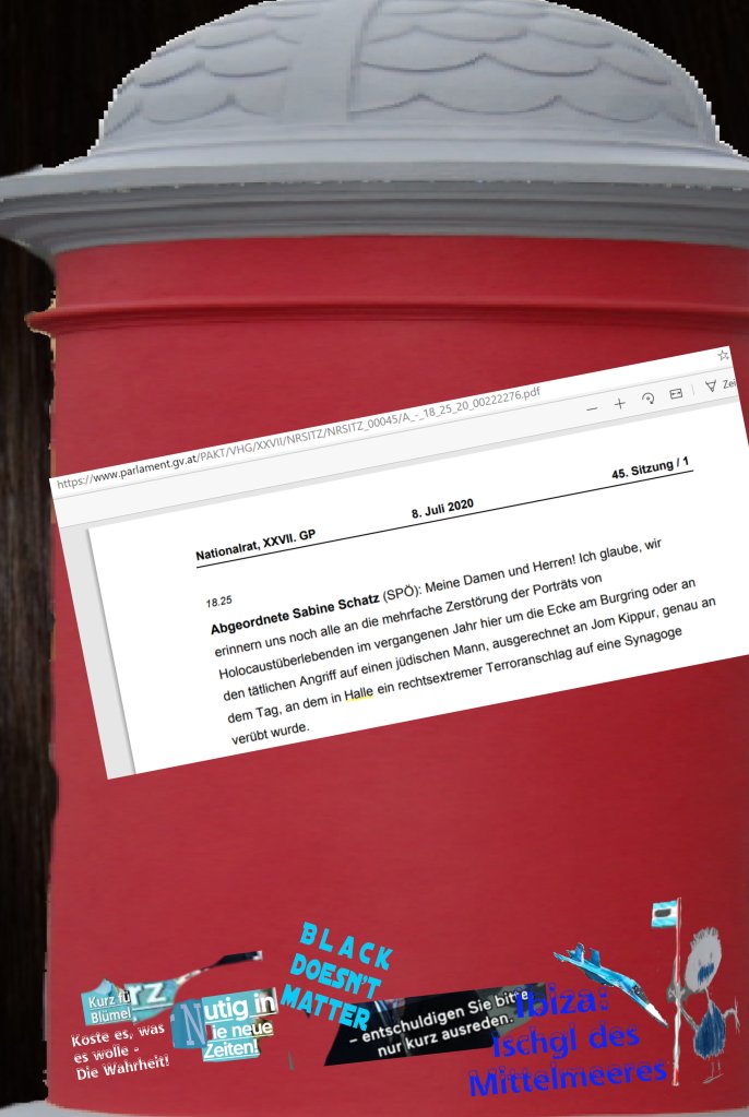 In Hanau kein Anschlag auf eine Synagoge, die Ermordeten keine … Und so sind die ermordeten Menschen in Hanau in recht österreichischer Allparteientradition nicht anzuführen, nicht erwähnenswert, wie diese ermordeten Menschen weder in der Vergangenheit noch in der Gegenwart noch in der Zukunft so angemessen erwähnt werden, wie sie seit 1945 angemessen zu erwähnen wären, und auch erwähnt werden, aber nicht, kurz gesagt, in Österreich.