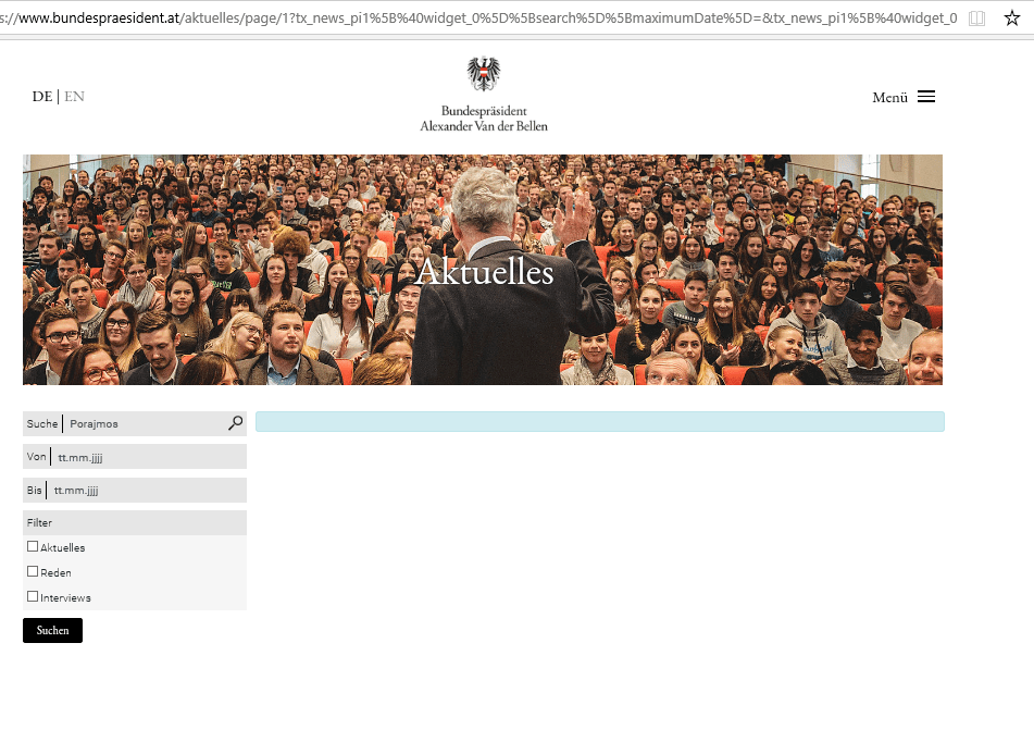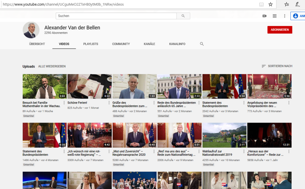 Wer in Zukunft diese Videobotschaft suchen wird, weil davon gehört, es solle solch eine Videobotschaft geben, wird lange suchen müssen, um diese zu finden, vielleicht wird auch die Suche sogar vergebens sein. Denn. Wo die Videobotschaft von Alexander Van der Bellen nicht zu finden ist, ist auf den sogenannten offiziellen Kanälen des Bundespräsidenten, also nicht veröffentlicht auf der offiziellen Website des Bundespräsidenten, nicht aufzufinden auf dem Youtube-Kanal des Bundespräsidenten, nicht auf seinem Twitter-Account.