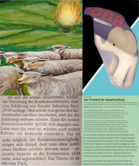 „Als sich alle wieder versammeln, erklärt die Vertretung des Bundeskanzleramts, dass eine Erklärung von Kanzler Sebastian Kurz (ÖVP vorliege. Man würde nun gerne den Kabinettschef von Kurz dazuholen, weil der die Erklärung verlesen möchte. Einer der beiden Kommissionsleiter spricht sich dagegen aus. Lasse man das jetzt zu, würden auch andere Politiker ein Rederecht einfordern. Das sei nicht möglich. Die Kommissionsmitglieder einigen sich darauf, dass man ohne politischen Einfluss arbeiten können muss – ansonsten brauche es die Kommission nicht mehr, wird argumentiert. Das Thema ist damit vom Tisch.“