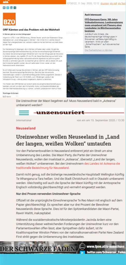 Gesinnungsgemäß ist in der Schreibe der gesinnungsgemäß zensurierten Website der für kurz gewesenen Regierungspartei nicht von „Kärnten“ die Rede, sondern allein von „Neuseeland“ …