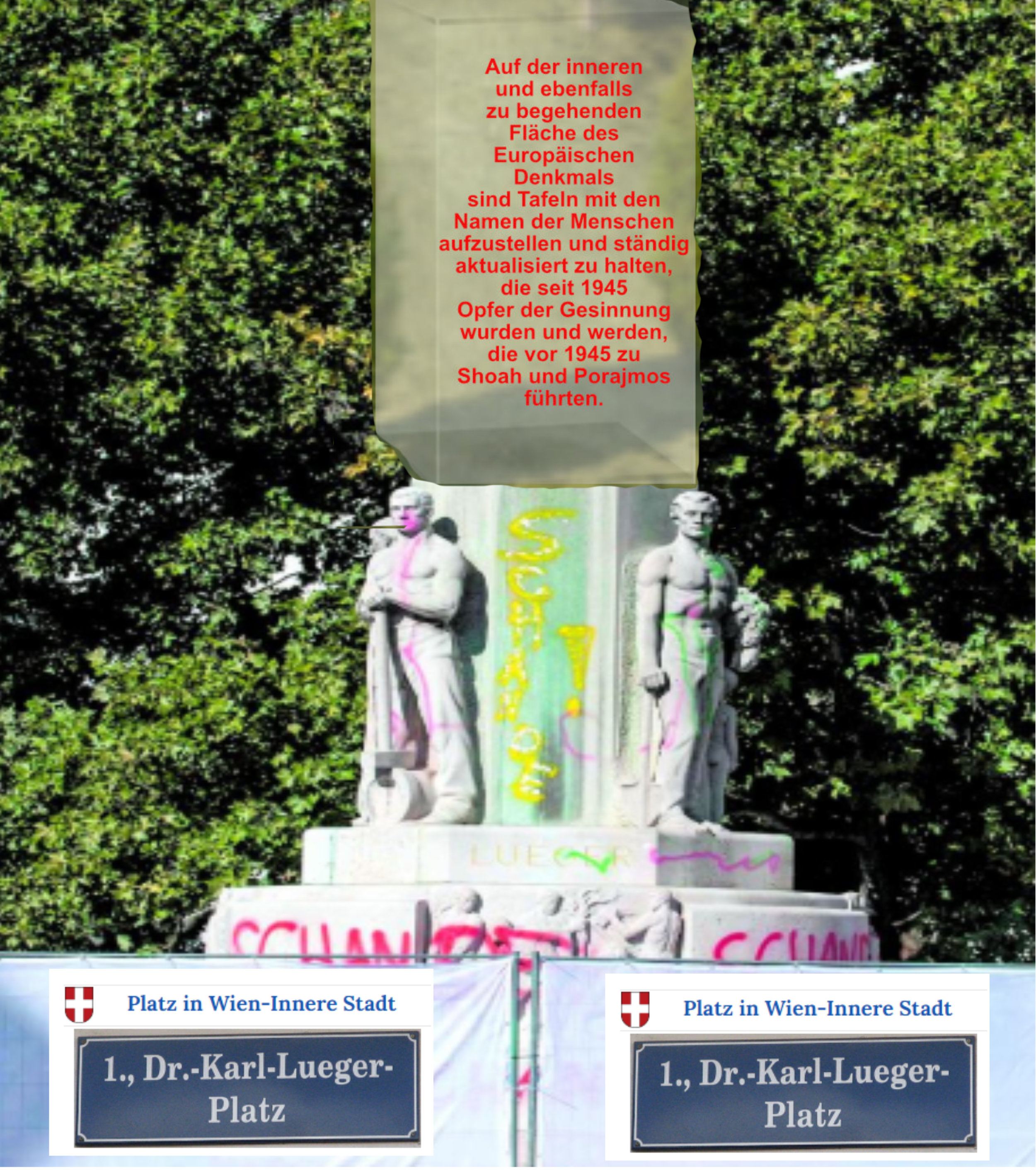 Es gibt in Wien, in der Bundeshauptstadt von Österreich, keinen geeigneteren Platz für ein endlich zu errichtendes Mahnmal Europas mit allen Namen der in Porajmos und Shoah ermordeten Menschen als den Karl-Lueger-Platz.