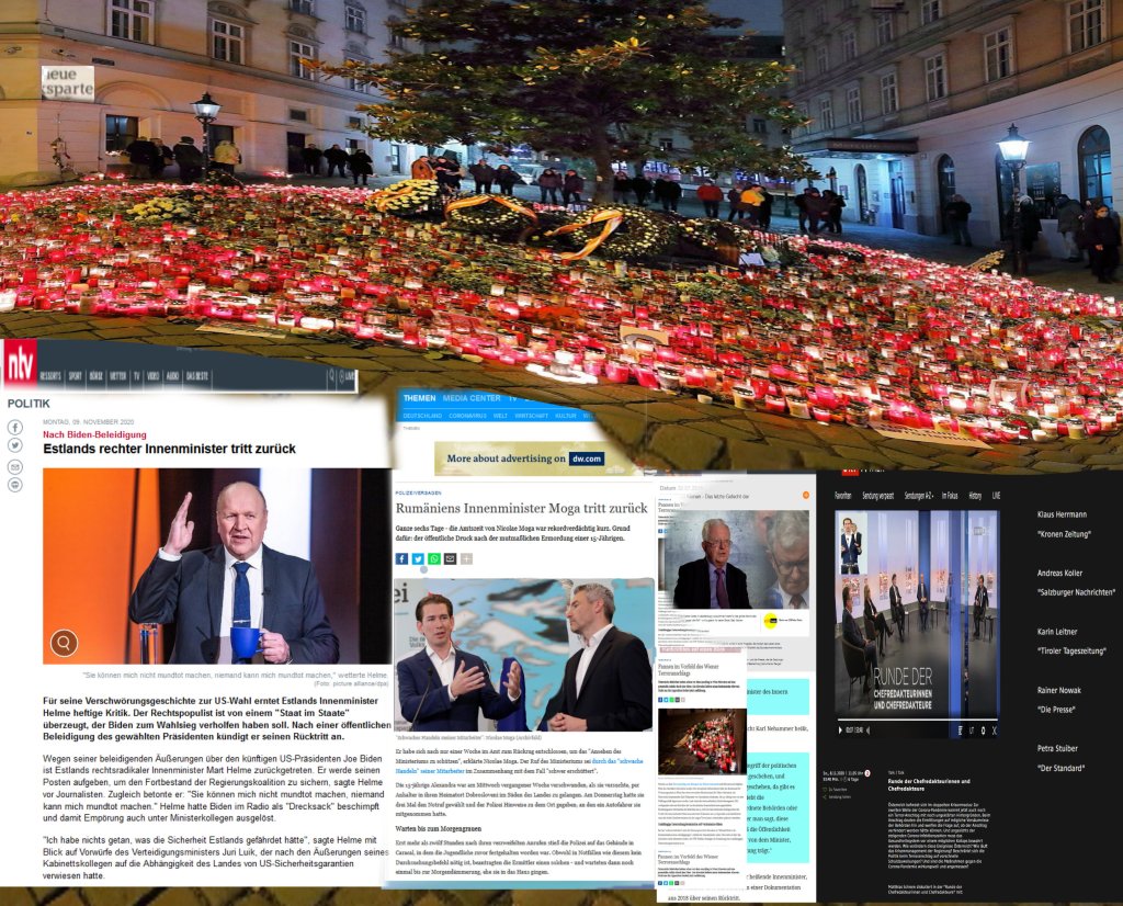 Der Innenminister drei, der soeben zurückgetreten ist, jenseits von Österreich, in dieser ersten Woche nach dem mörderischen Verbrechen in Wien im November ´20 diesseits der politischen Verantwortung zurückgetreten ist, dieser Innenminister drei ist aktuell im Vergleich zum Innenminister vier für ein Nichts zurückgetreten, zurückgetreten wegen Worte, zurückgetreten für ein paar deftige und falsche Worte, mit denen er in Österreich zum Minister erst geworden, gar recht erst zum Vizekanzler, auch zum Innenminister, wie der Innenminister fünf.