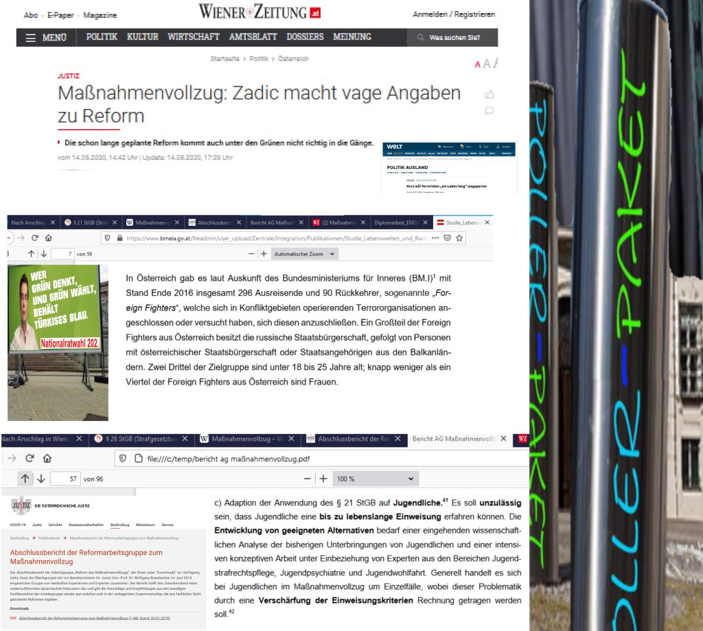 Nach Auskunft des österreichischen Bundesministeriums für Inneres, wie gelesen werden kann, seien zwei Drittel der „Foreign Fighters“ aus Österreich unter 18 bis 25 Jahre. Exemplarisch steht aktuell für die Zielgruppe für das Gesetz auf der Grundlage eines zu reparierendes Gesetzes der in der ersten November-Woche ´20 erschossene Mörder, mit seinen zwanzig Jahren, dessen glaubensgeleiteter Irrweg begann, als er keine oder gerade einmal 18 Jahre …