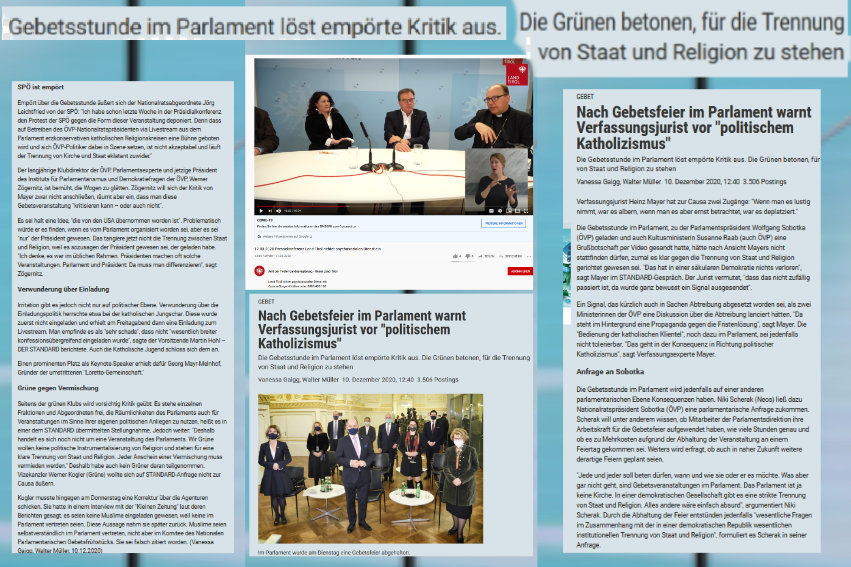 Noch lahm. Aber wie lange noch? Jetzt, im Dezember ’20, die Einladung zu einer Gebetsstunde in das österreichische Parlament. Der Einladende ein Mann, der einen „laizistischen Islam“ stärken will.