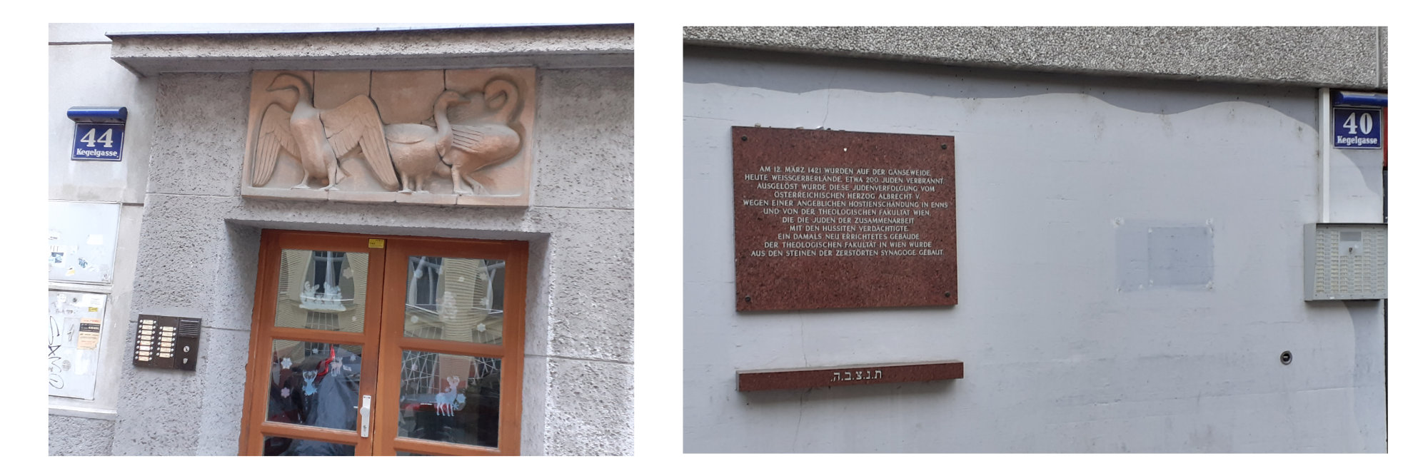 Sechs Jahre nach dem Ende des nationalsozialistischen Massenmordstaates, sechs Jahre nach der Befreiung der gerade noch am Leben sich befindlichen Menschen aus dem Vernichtungslager Auschwitz war der Wille in Österreich groß, daß nichts an die grauenhaften Verbrechen erinnern darf. So ist es verständlich, daß in der Kegelgasse keine Gedenktafel angebracht wurde, sondern ein liebliches Relief mit Gänsen, die Auslöschung also der Tatsache, daß die „Gänseweide“ einst eine Hinrichtungsstätte für eine sehr lange Zeit war, auf der auch jüdische Menschen verbrannt, ermordet wurden.