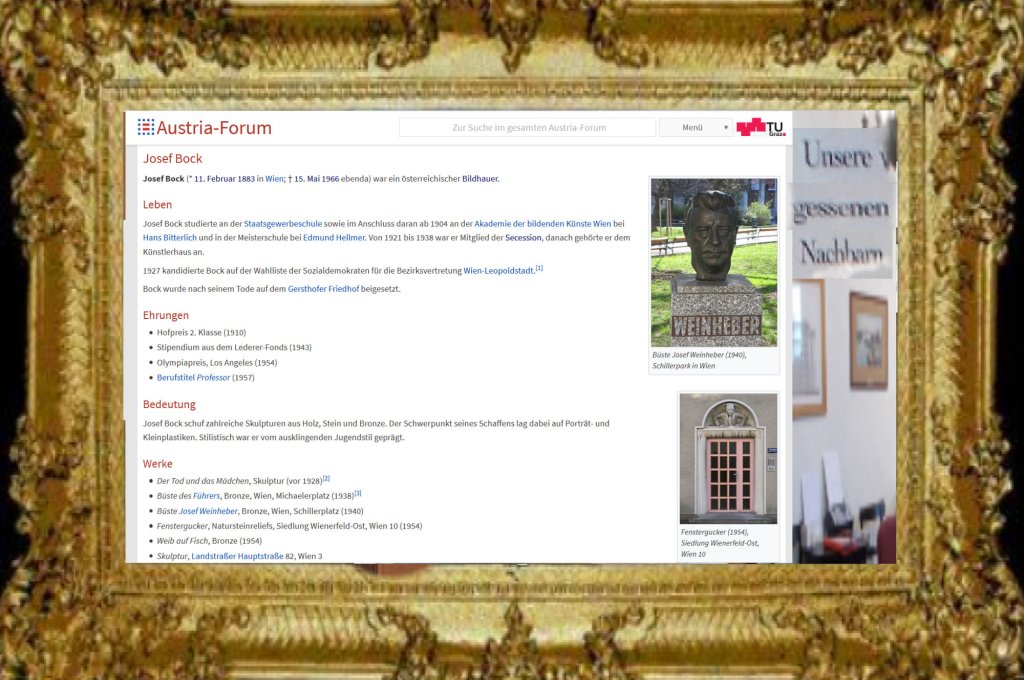 Unscheinbare, nichtssagende Josef-Weinheber-Kabinette in Bezirksmuseen Ottakring und Landstraße, und auf der Landstraße nun die Ausstellung für Margarete Hanusch, nicht nur im Bezirksmuseum, auf der Landstraße steht ihre „Blubo“-Plastik „Familie“, ein paar Hausnummern davor soll auf der Landstraßer Hauptstraße, jedenfalls nach dem „Austria-Forum“ eine Skulptur von Josef Bock stehen; sicher ist nur, seine Hitler-Büste im Looshaus gibt es nicht mehr, seine Weinheber-Büste im Schillerpark nach wie vor …