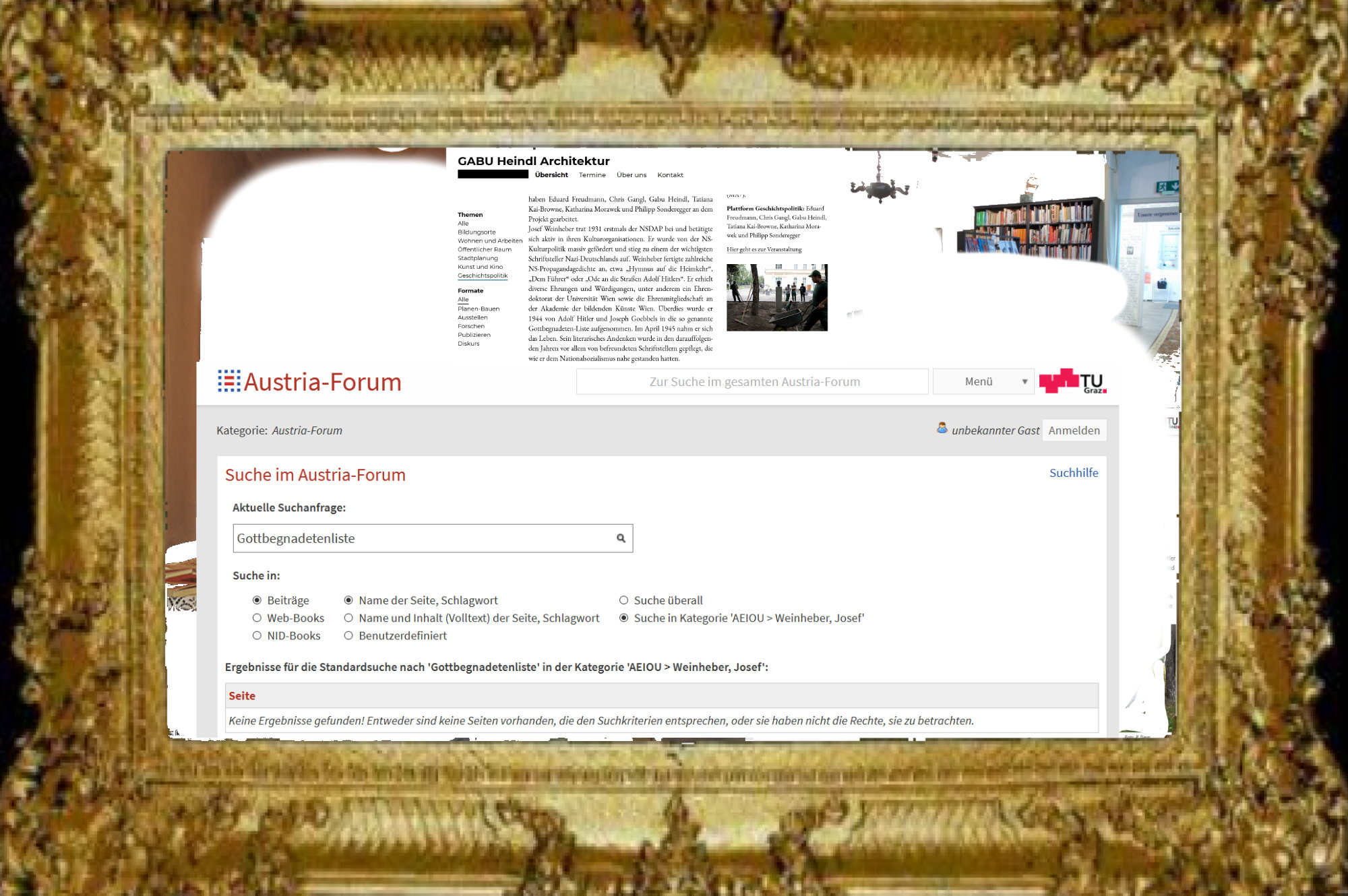 Daß Josef Weinheber zur gleichen Zeit in die „Gottbegnadetenliste“ des Adolf Hitler aufgenommen wurde, davon weiß „Austria-Forum“ nichts, „das Wissensnetz aus Österreich“ weiß überhaupt nichts von einer „Gottbegnadetenliste“, auf seiner Website läßt sich das Wort nicht finden; das ist nicht ungewöhnlich, schließlich, es ist ein „das Wissensnetz aus Österreich“ …