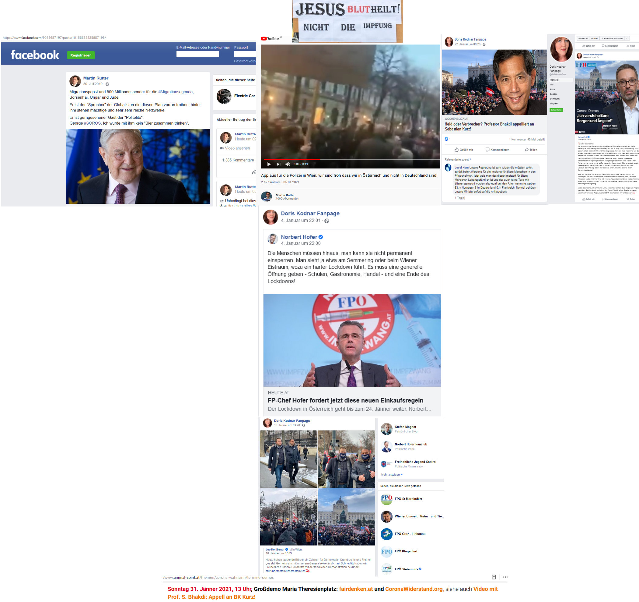 Das war eine Botschaft auf der Demonstration am 16. Jänner ’21 auf der freudlosen Gasse, die die Innenstadt der österreichischen Hauptstadt ringförmig einschließt. Und es wird, darf vorausgesagt werden, wieder eine der Botschaften sein, auf der Demonstration 31. Jänner 2021, gemäß der Ankündigung des spirits of animals …