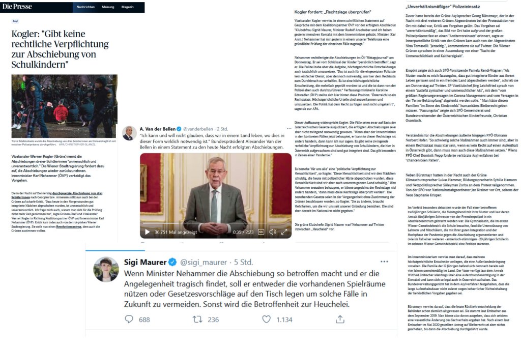 Liebe Österreicherinnen und Österreicher und alle Menschen, die hier leben. Heute nacht sind mehrere Familien mit minderjährigen Kindern abgeschoben worden. Das macht mich zutiefst betroffen. Ich kann und will nicht glauben, dass wir in einem Land leben, wo dies in dieser Form wirklich notwendig ist. Wir müssen einen Weg des menschlichen respektvollen Umgangs miteinander finden. Gerade wenn Kinder die Hauptleidtragenden sind. Ich habe in diesem Fall keine formale Zuständigkeit, aber sehr wohl eine klare Haltung, um es ganz deutlich zu sagen. Jedes Staatsorgan muss selbstverständlich auf Basis der geltenden Gesetze handeln. Ich kenne die Akten der konkreten Verfahren nicht. Aber hätte es nicht einen rechtlichen Spielraum gegeben? Was ist mit den Rechten der Kinder? Den Kinderrechten, die gewährleistet sind. Wurden die Kinder ausreichend gehört?