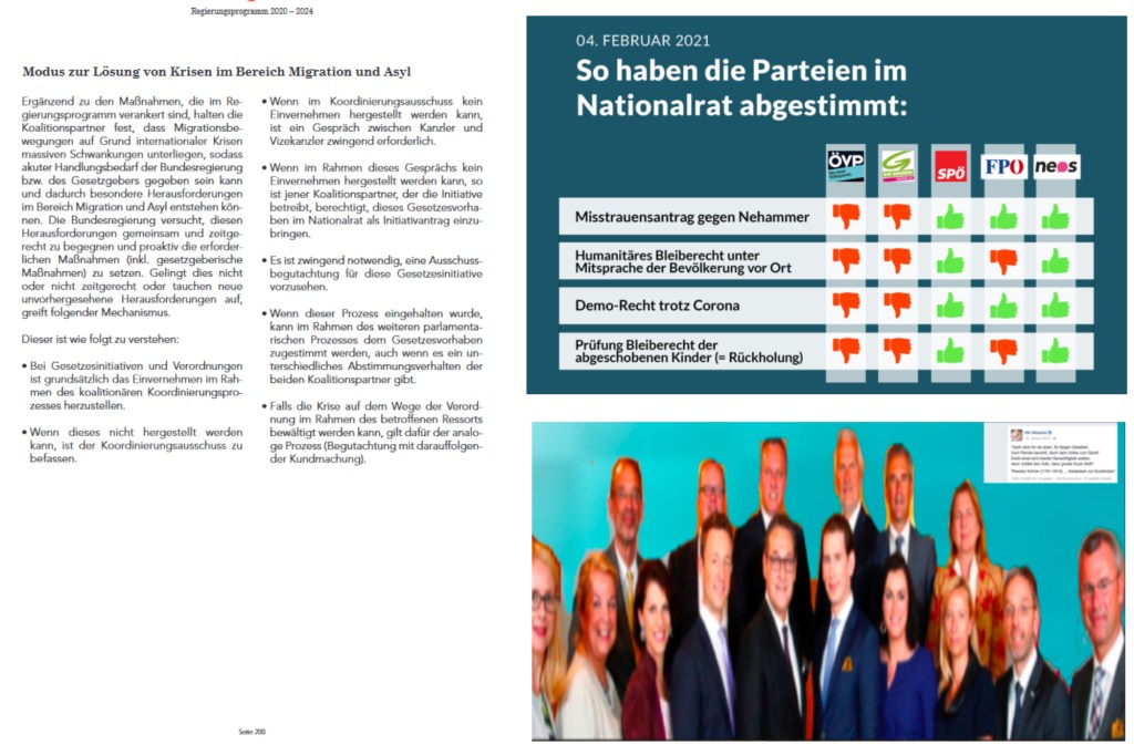 Am 4. Februar 2021 haben im österreichischen Parlament die Grünen mit FPÖ und ÖVP, kurz gesagt, gegen humanitäres Bleiberecht und gegen Rückholung von abgeschobenen Kindern gestimmt.
