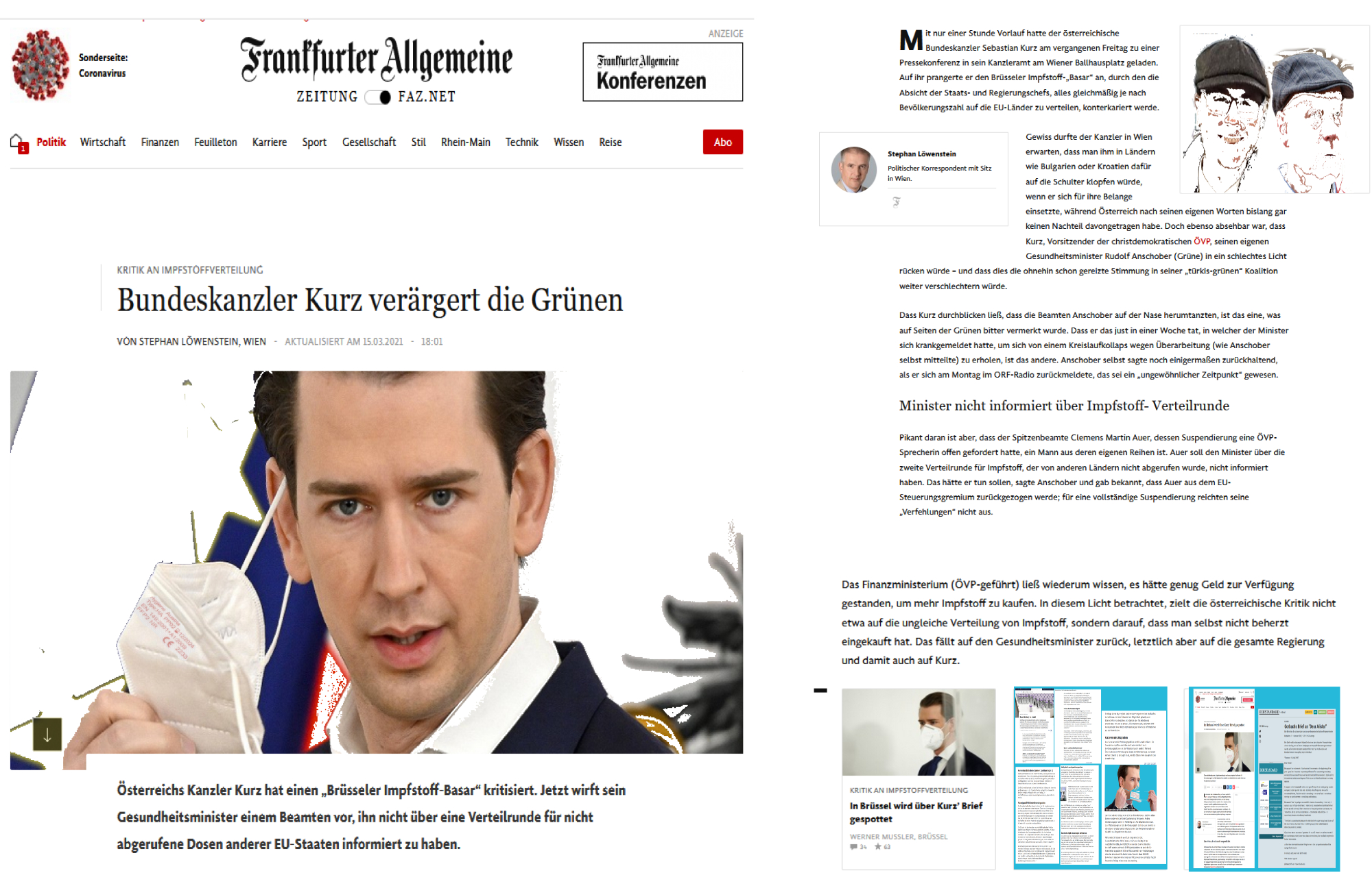 Martin Thür: Herr Bundeskanzler, bevor wir zur Problemlösung kommen, beginnen wir vielleicht mit letzter Woche. Sie sagen, sie hätten erst jetzt, Mitte März, mehr zufällig entdeckt, daß Österreich proportional weniger Impfstoff als andere Länder geliefert bekommt. Wie kann es sein, daß Ihre Regierung über einen der wohl wichtigsten Faktoren in der Pandemiebekämpfung offensichtlich monatelang nicht Bescheid wußte.