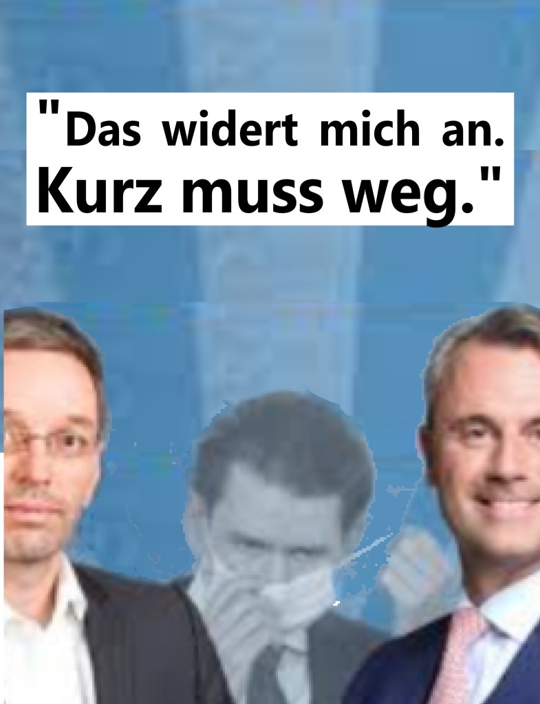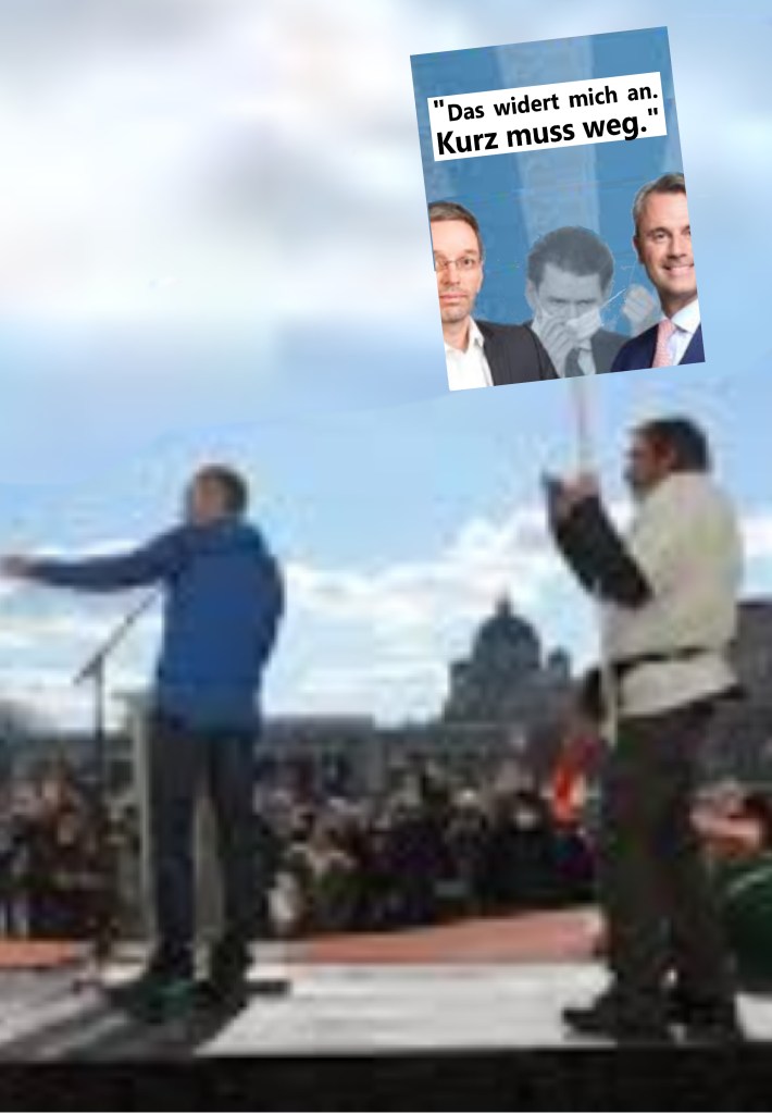 Die Tafeln, die Transparente, die Fahnen mit „Kurz muss weg“ würden wohl ein wenig anders gestaltet sein, vielleicht mit einem Abbild von dem Dreigespann und ergänzt um die von Seb. Kurz gemachte Aussage über von ihm als „inakzeptabel“ gelittenen Demonstrationen: „Das widert mich an.“